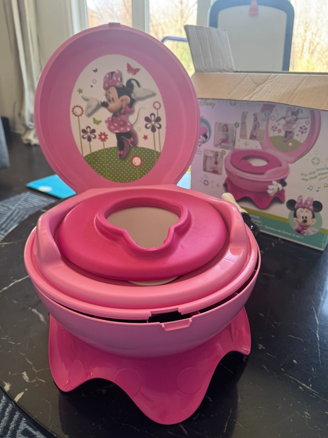 Pink Minnie Mouse potty chair. Features a removable seat. Includes a carrying case. Great for potty training. Never used.