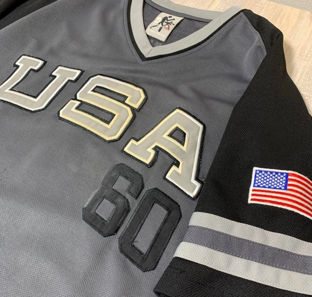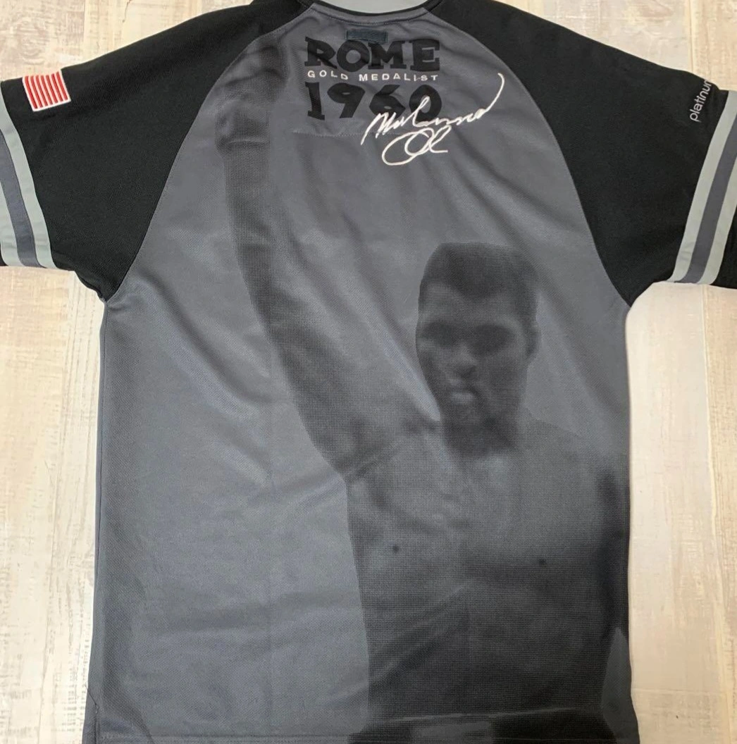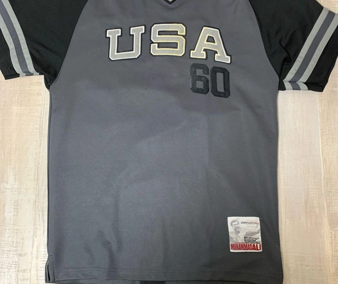 15Grey and black jersey. Features Muhammad Ali's image and stats. USA 60 on the front. Limited edition Platinum Fubu.