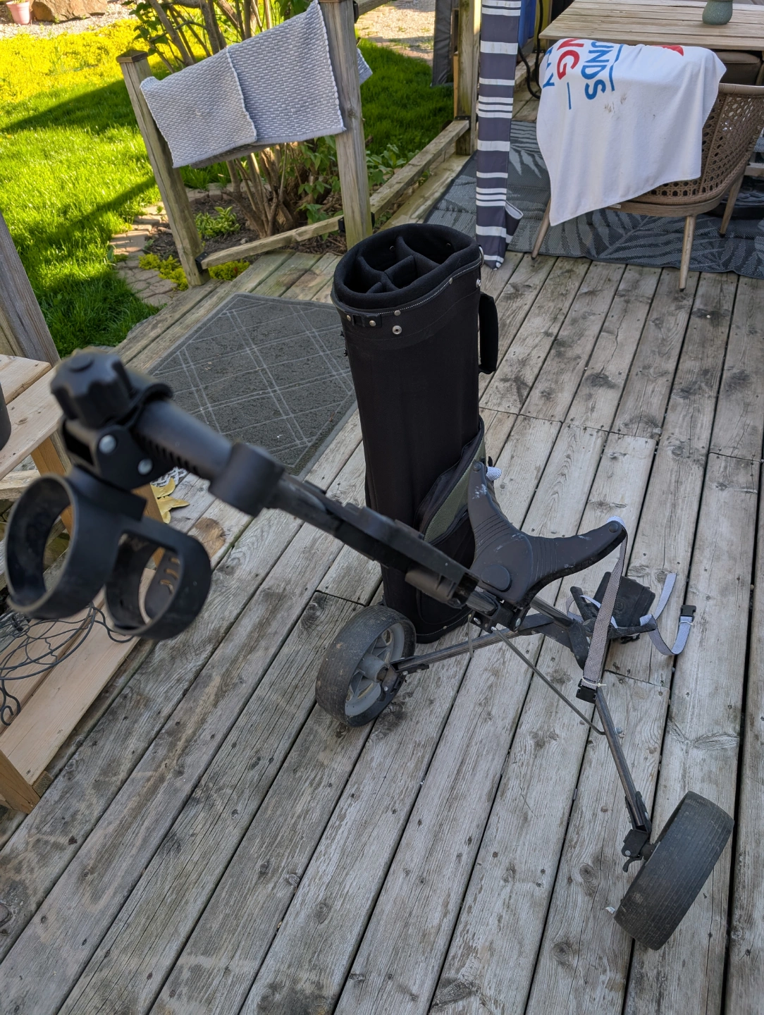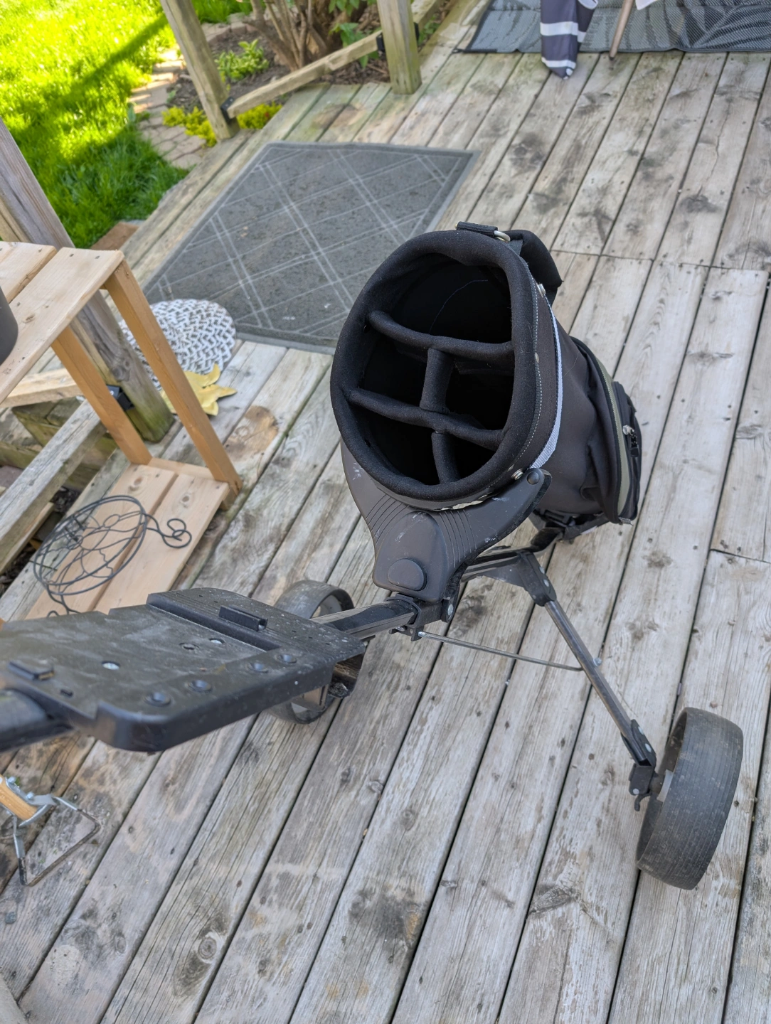 Buy & SellUsed Spalding Golf Push Cart with BagUsed Spalding Golf Push Cart with Bag$30Dynacraft golf push cart. Includes attached golf bag. Good condition. Wheels and frame intact. Ready for the course!WHERE TO MEETCheck LocationView MapSELLERverifiedAndrewWestminster600 reviews0 chats·0 favorites·5 views