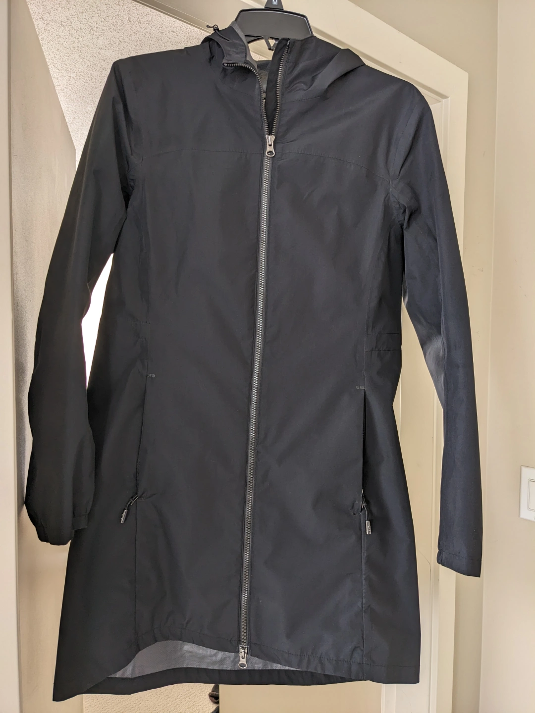 Perfect for unpredictable weather, this packable jacket fits into a small carry pouch so you can always take it on the go. It hits just above the knees and even features a cinching system at the back of the waist to create a more fitted look.