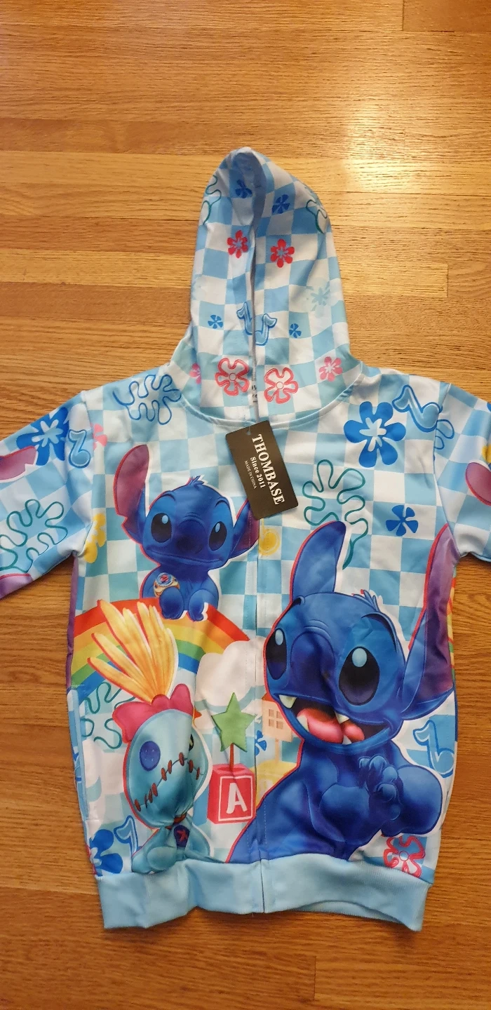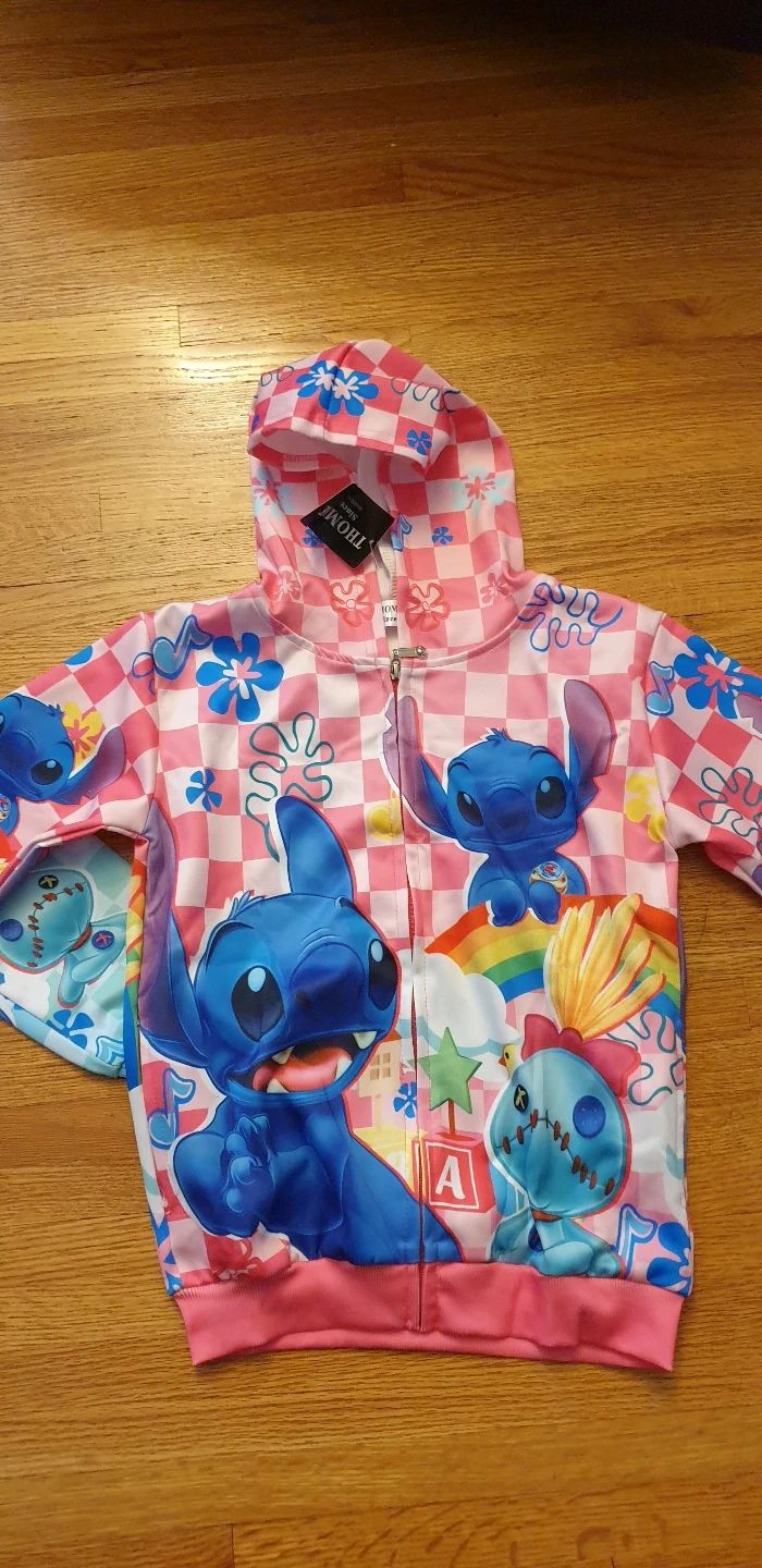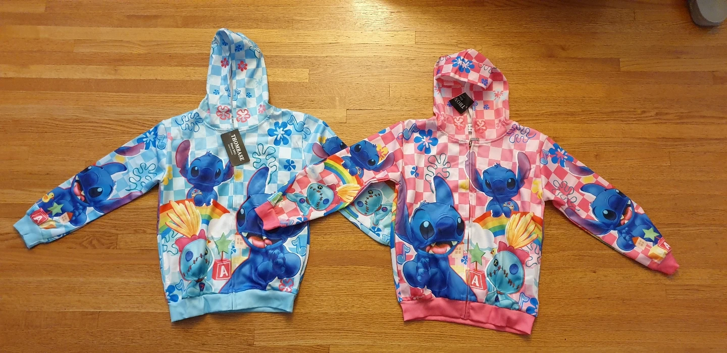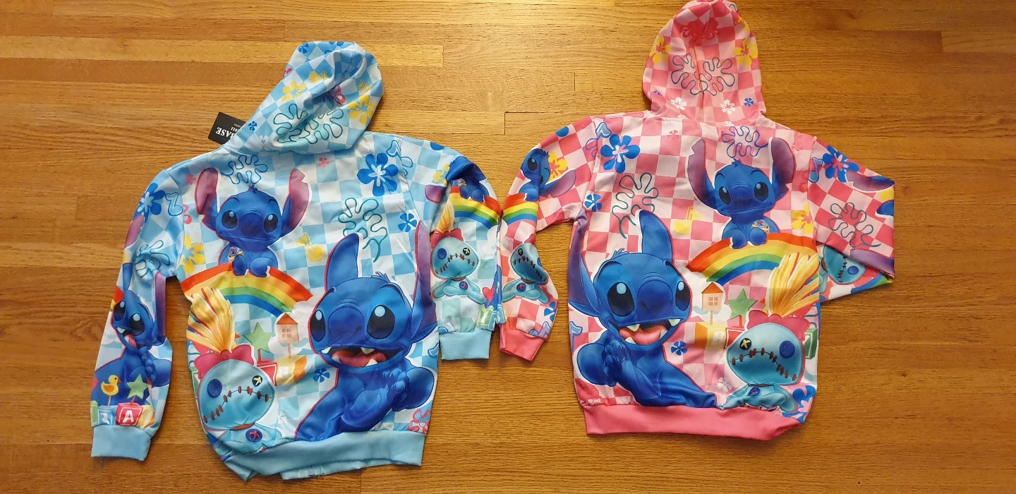 New Stitch zip-up hoodies. One light blue size 5/6, one pink size 9/10) Features colourful designs and a cute Stitch theme. Long sleeves, full zip closure. Perfect for casual wear. size Size 5-6 (120), 9-10 (140)