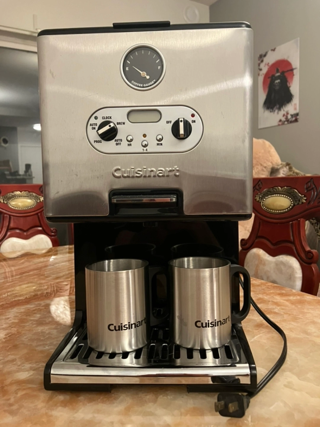 180Programmable coffee maker. Stainless steel design. Includes two Cuisinart branded mugs. Pickup - 5 min walking distance from Edmonds Skytrain.