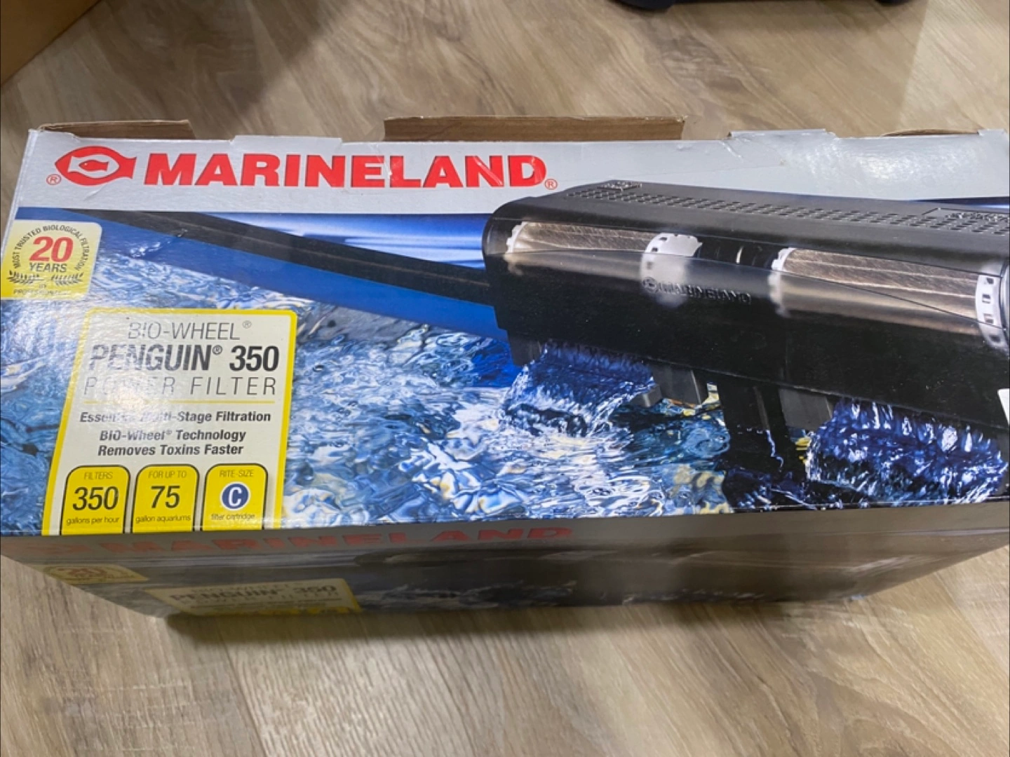 Brand new, never opened Marineland Penguin 350 power filter. Includes Bio-Wheel technology. Essential multi-stage filtration. Removes toxins faster. Perfect for aquariums up to 75 gallons.