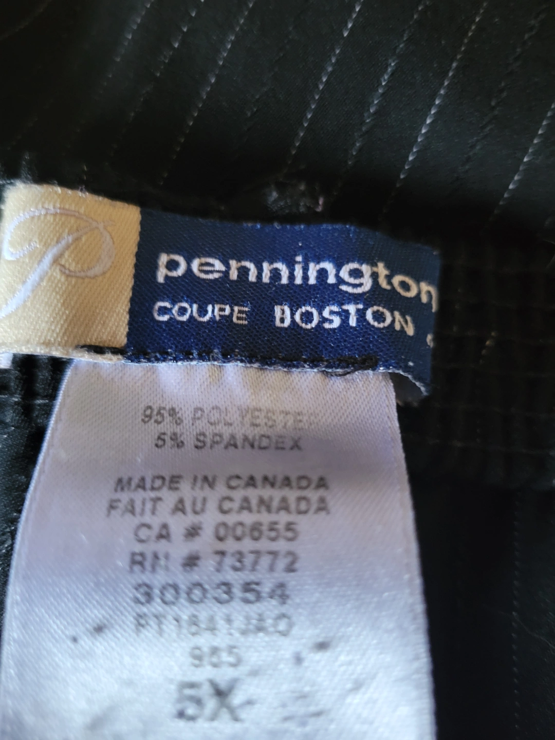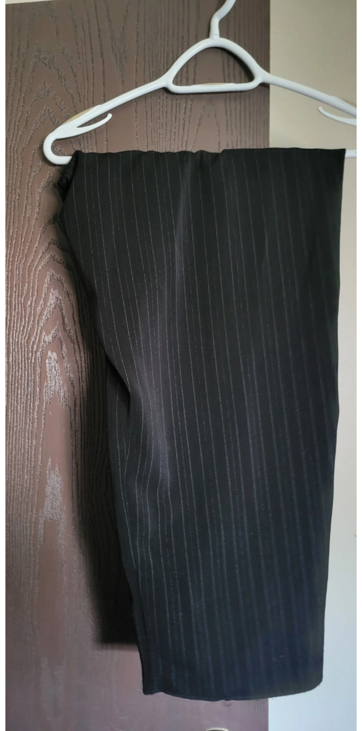 -Women's black with white pinstripe pants.