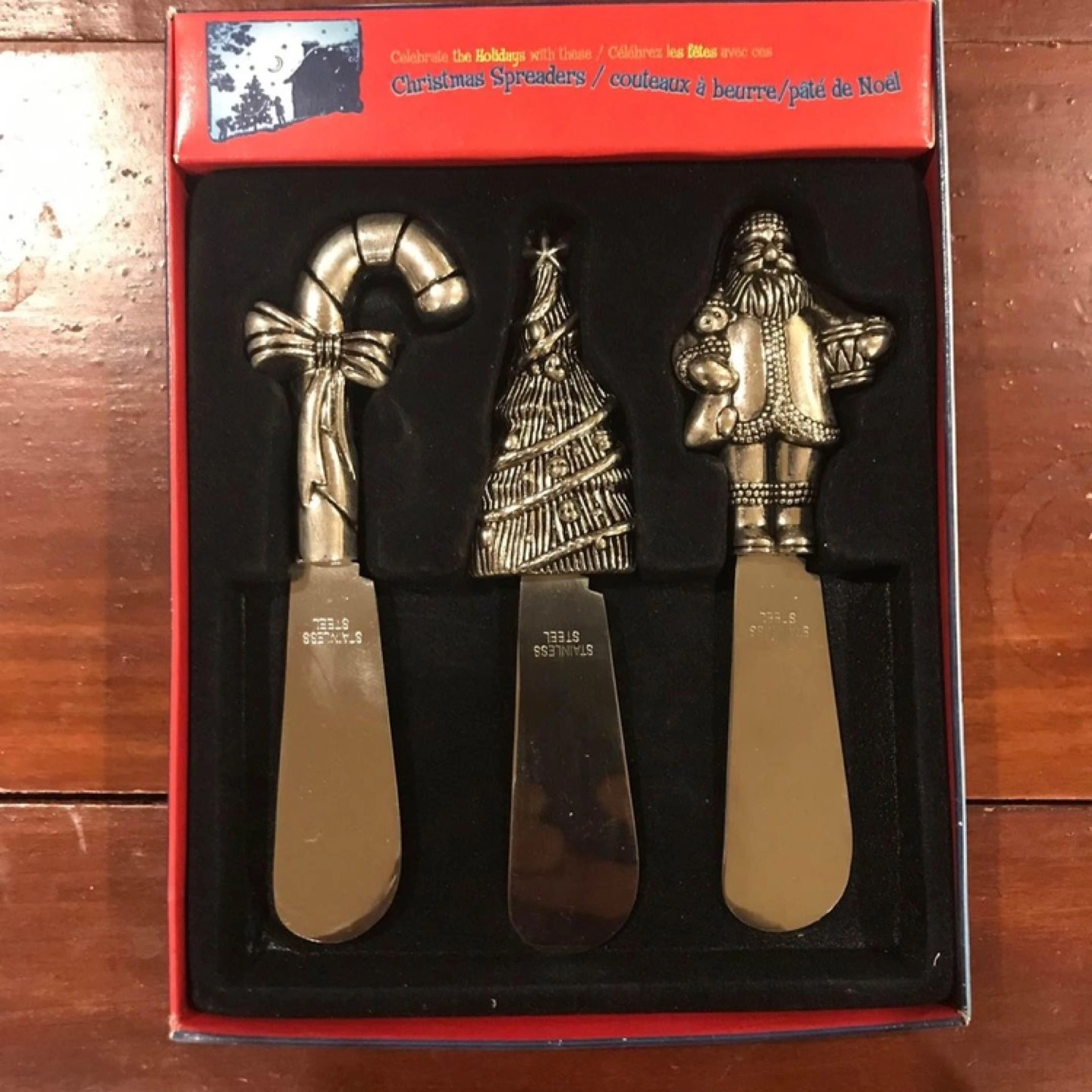 For sale is a brand new set of 3 stainless steel cheese spreaders. They are 5” long.