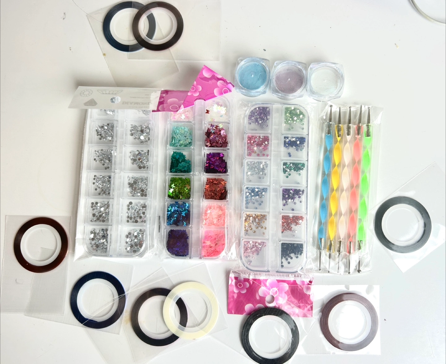 Variety of nail art decorations. Perfect as a starter pack for exploring manicure designs.