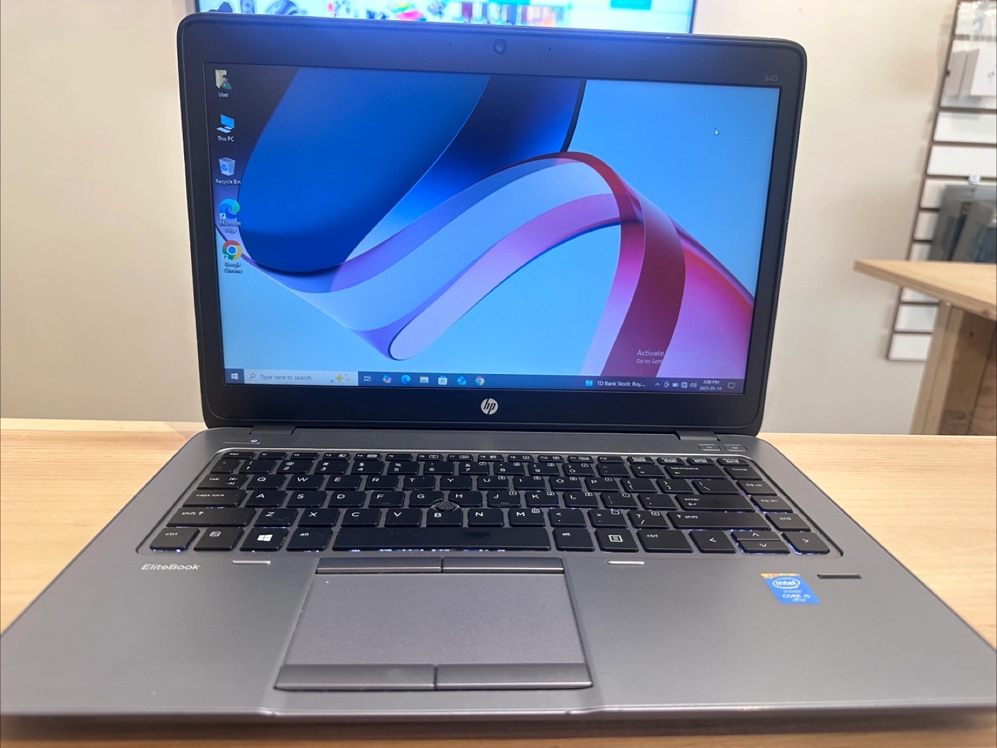 Used HP EliteBook 840 G2 laptop. Intel(R) Core(TM) i5-5300U CPU @ 2.30GHz processor. 8.00 GB RAM. 256 GB SSD storage. Intel(R) HD Graphics 5500. Great for everyday use.