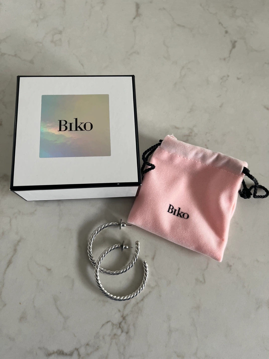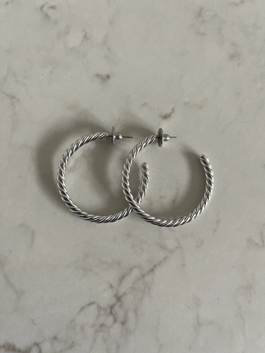 Silver twisted hoop earrings. Come with box and dust bag. Beautiful statement piece.