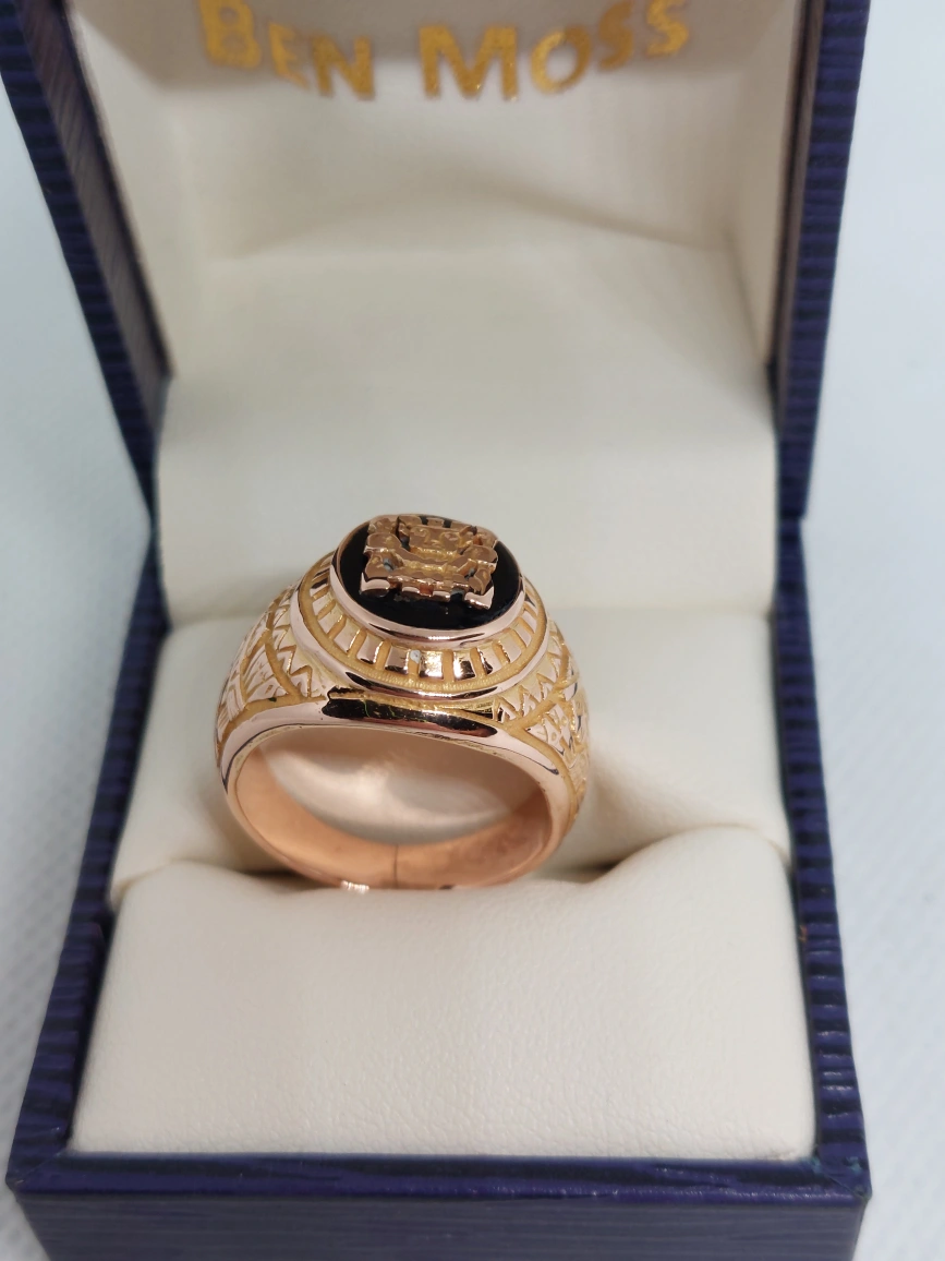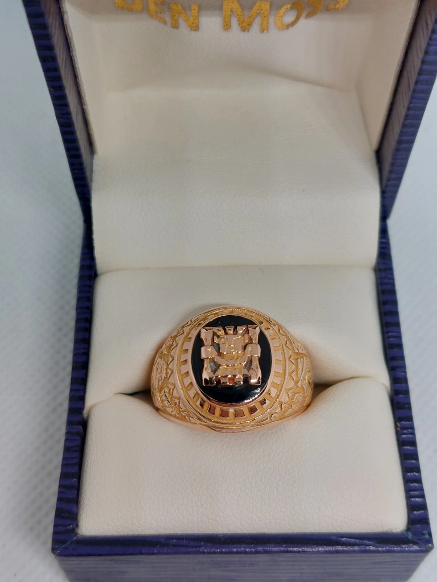13714K Gold Ring with custom Aztec Mayan design 12.74 gr Size 6.5