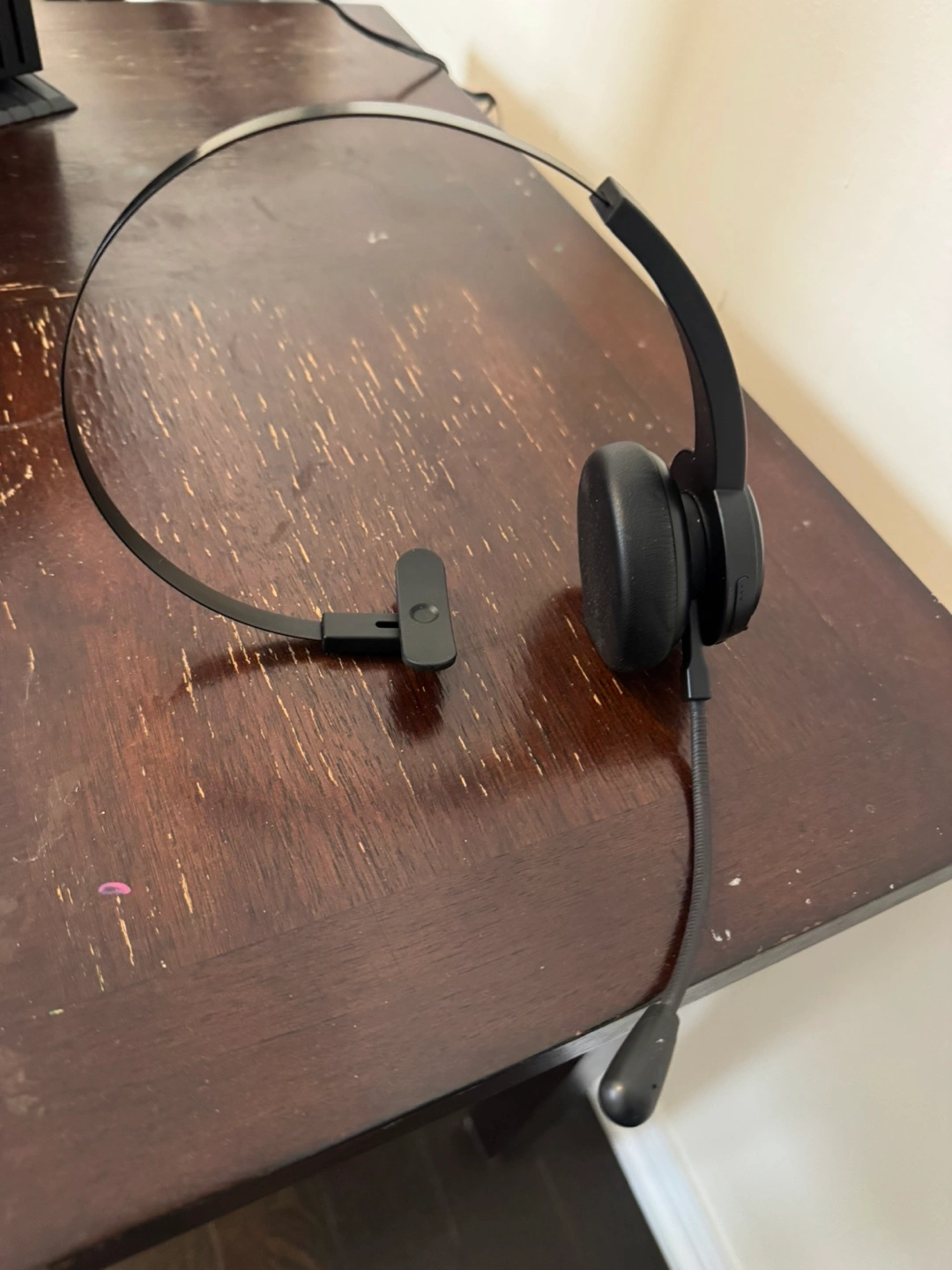 Mono headset. Lightweight and comfortable. Great for calls. Includes boom mic.