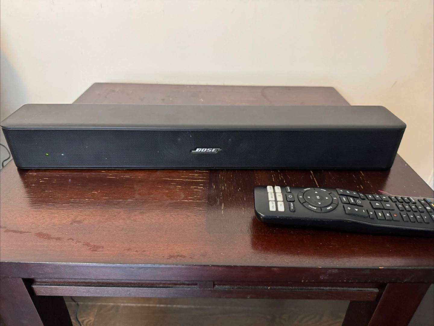 Bose soundbar. Includes remote. Great sound quality. Compact design. Easy setup.