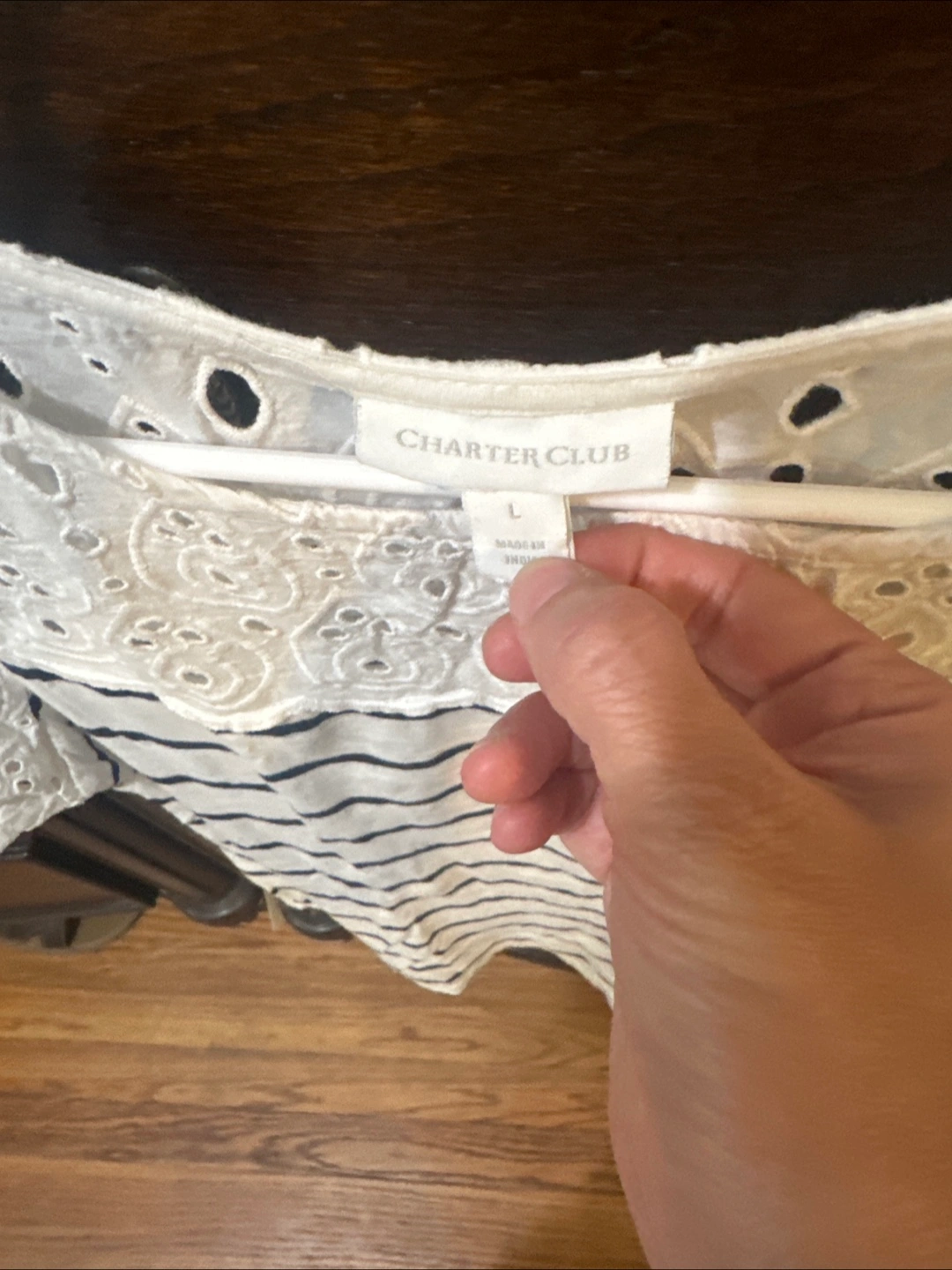 Charter Club Women's Eyelet Detail Striped Shirt, Size L
