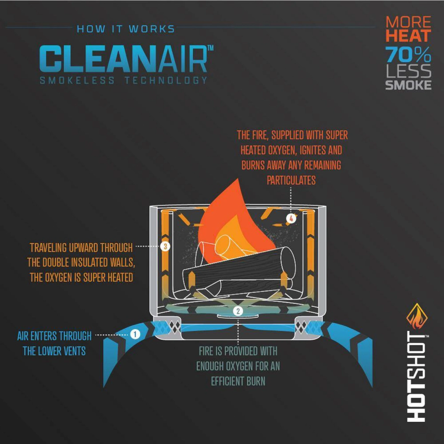 •CleanAir Smokeless Technology reduces up to 70% of the smoke compared to traditional fire pits