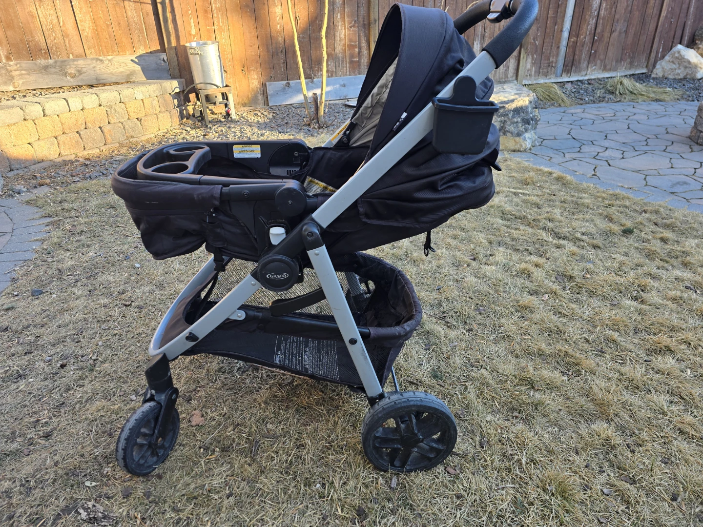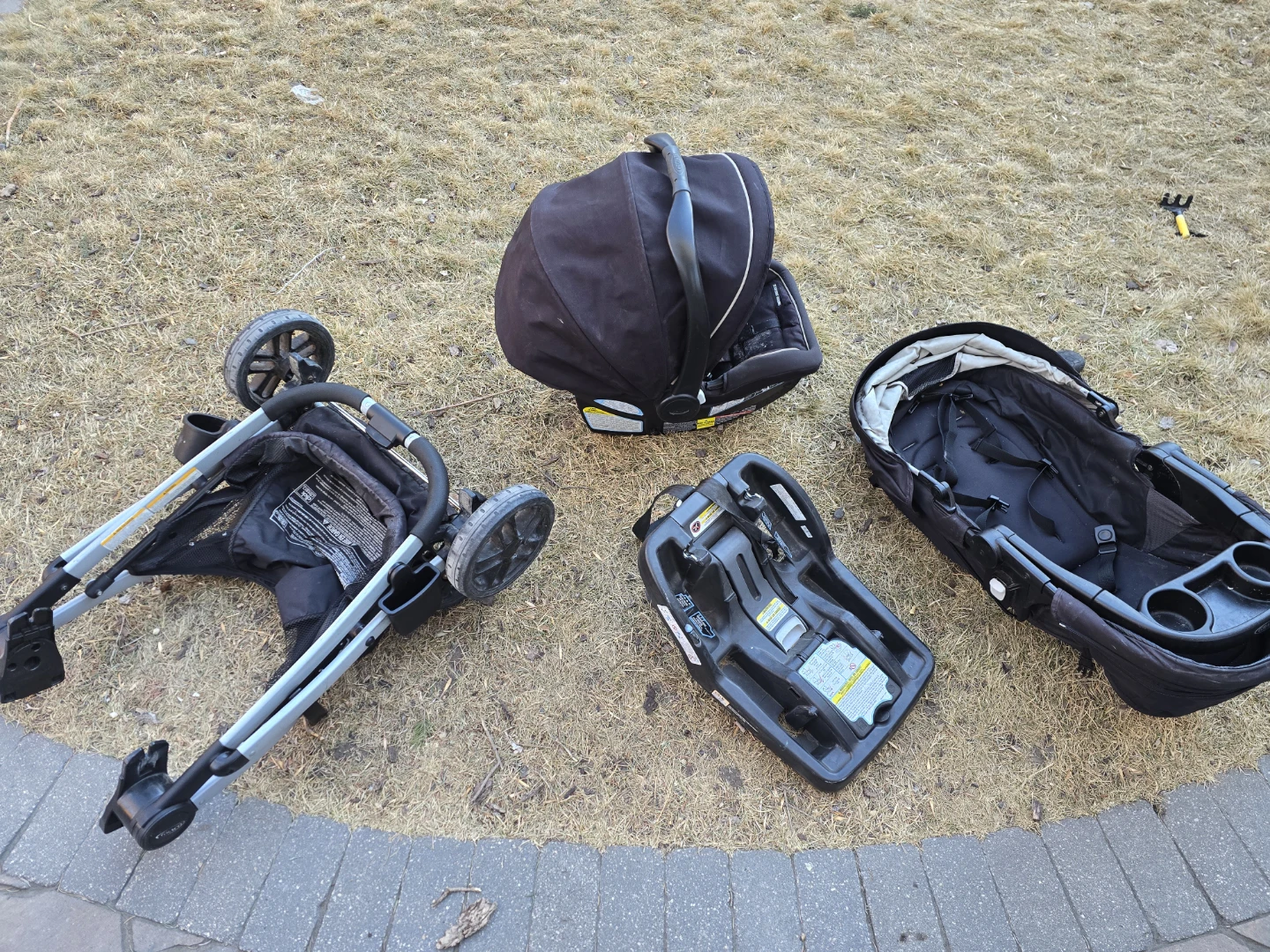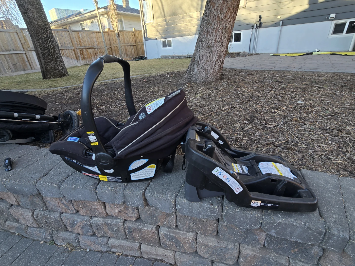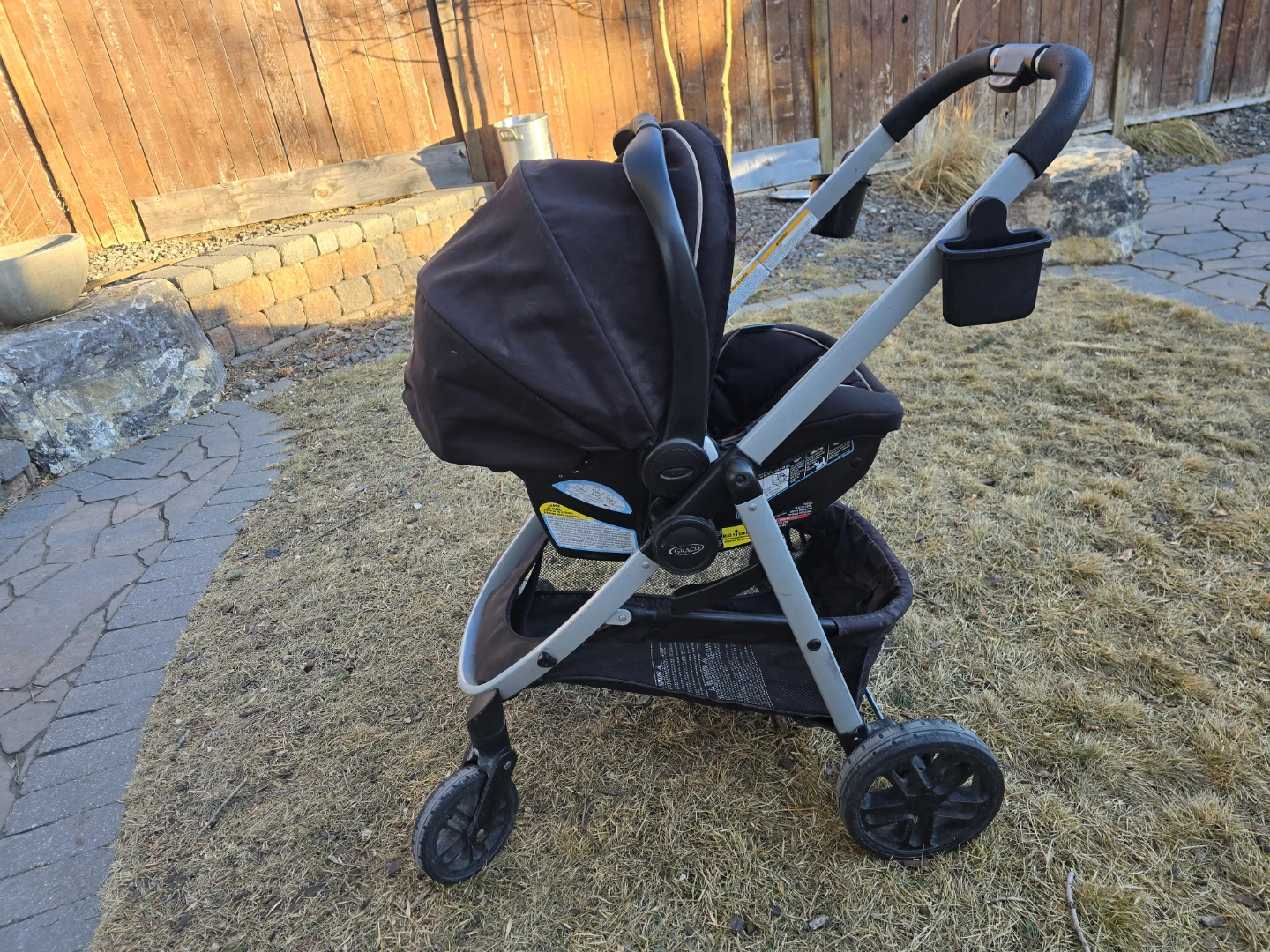 Graco car seat with base and stroller combo. Black colour. This system makes travelling with a baby super convenient! Multiple ways to set up the seats. Reg price $750.