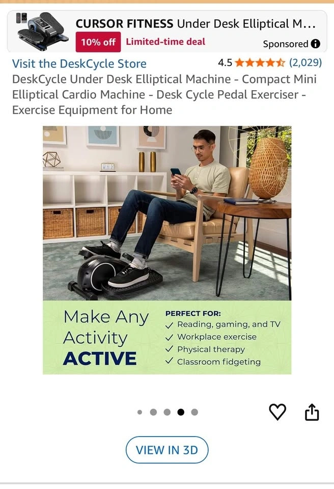 This compact mini elliptical fits under almost any desk and gives you a smooth, silent workout without interrupting your day.