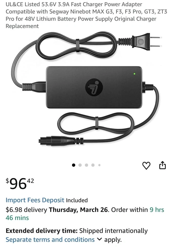 Selling an open-box, like-new STIO 53.6V 3.9A fast charger power adapter. It is currently selling for over $96 on Amazon, but I am offering it for only $49!
