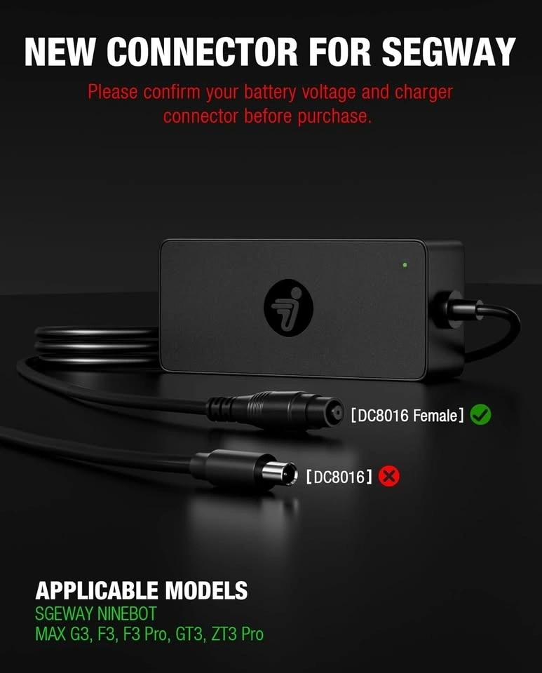 Compatibility: Works perfectly with 48V Lithium Battery Segway Ninebot models including MAX G3, F3, F3 Pro, GT3, and ZT3 Pro.