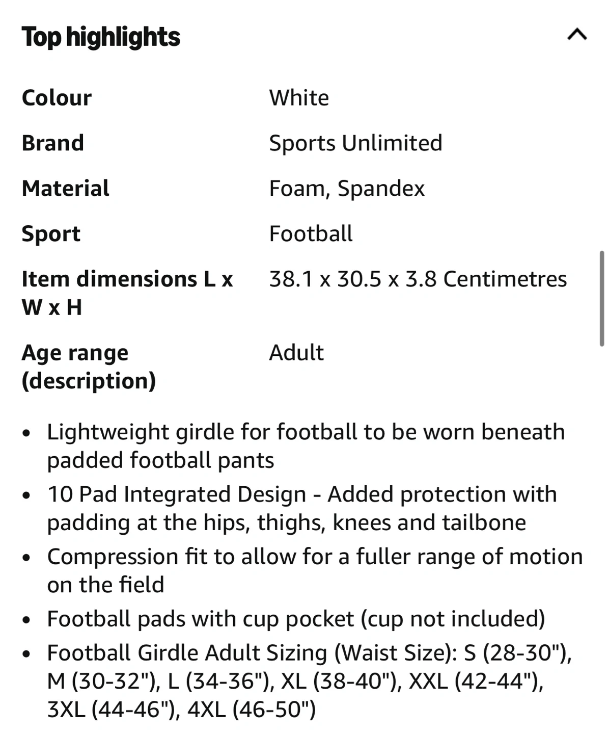 Adult Football Girdle 3X