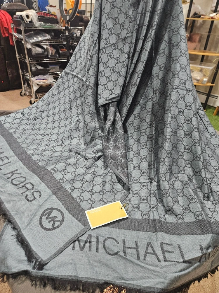 Selling a brand new Michael Kors scarf! It's a lovely grey colour with the MK logo pattern throughout. Perfect for adding a touch of style to any outfit