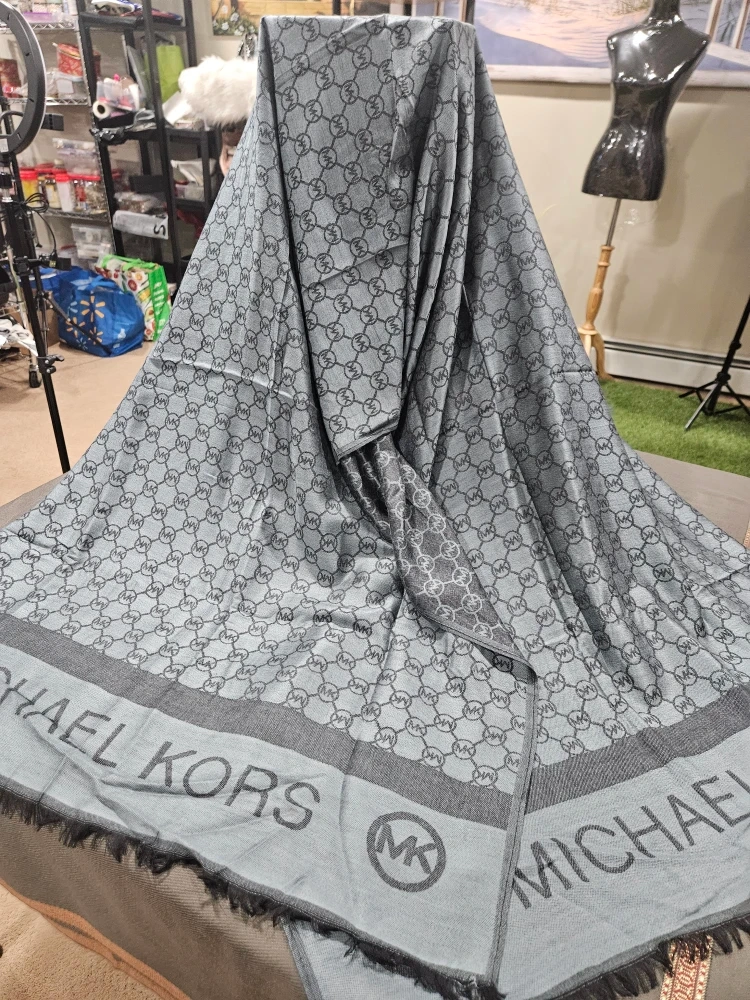 Selling a brand new Michael Kors scarf! It's a lovely grey colour with the MK logo pattern throughout. Perfect for adding a touch of style to any outfit