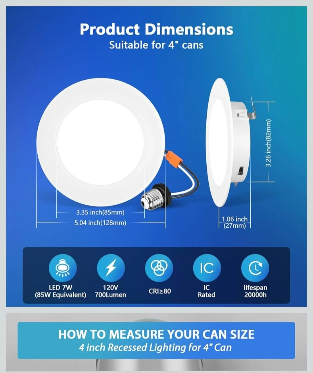 4 Inch 5CCT Retrofit LED Pot Lights, 7W 700 Lumens Dimmable ...