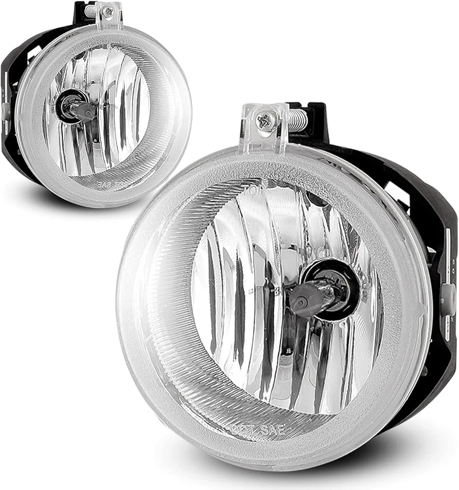 This is a pair of round fog lights. They're clear with a chrome bezel. DOT SAE approved. Includes bulbs.