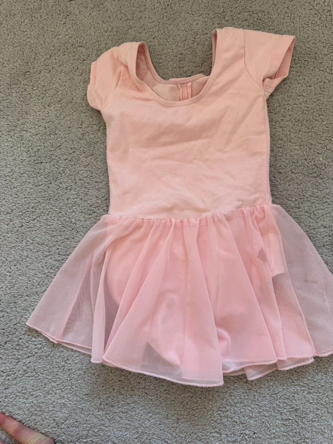 A sweet pink ballet leotard with a layered tulle skirt. It's perfect for dance class or a costume party. The material is soft and stretchy. Size 98