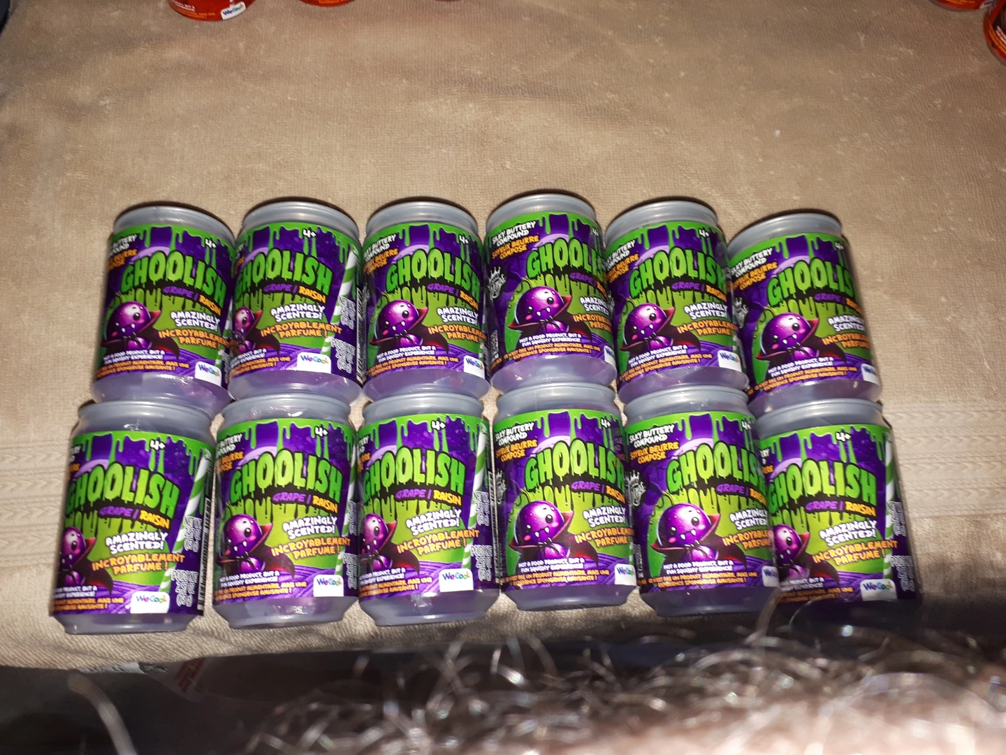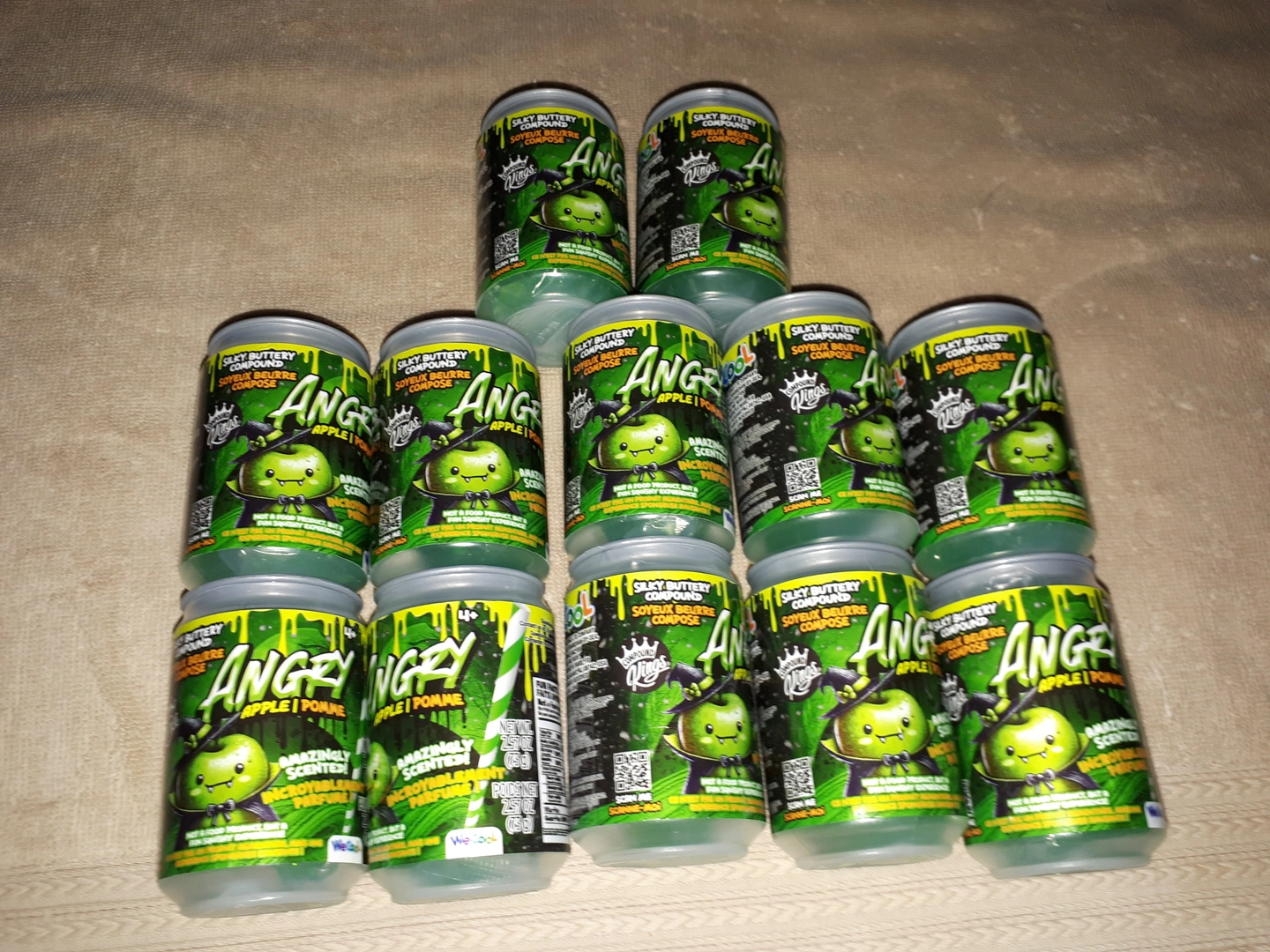 I am selling 45 Containers of Compound Kings Slime by We Cool Toys . $75.00 for all 45 of them. The Slime comes in 4 Different Scents of 73grams each. The Scents are listed Below: OMINOUS ORANGE CHILLING CHERRIE ANGRY APPLE GHOOLISH GRAPE YOUR KIDS WILL LOVE THIS SLIME Texture: Velvety, smooth, soft, and easily spreadable, unlike stretchy, goopy slime. Feel: Creamy and buttery, often described as like gelato or soft clay. Key Additions: Soft clay (air-dry), instant snow (for "Cloudz"), or shaving cream are mixed in to achieve the buttery consistency. Brands: Compound Kings offers popular ready-made versions, like Butter Cloudz.