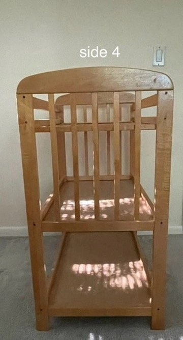 Beautiful vintage changing table featuring two shelves. Due to sanitary reasons, pad not included. Wood species is unknown.