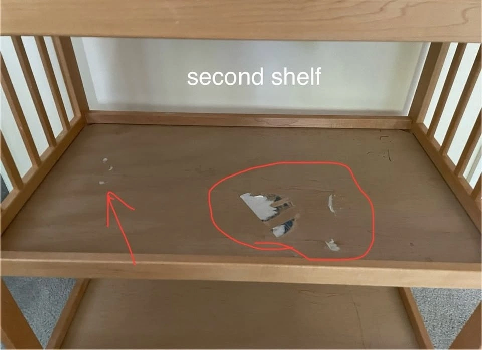 *Third shelf has slight discoloration at the edge and child's markings as shown (see pics 8-10)