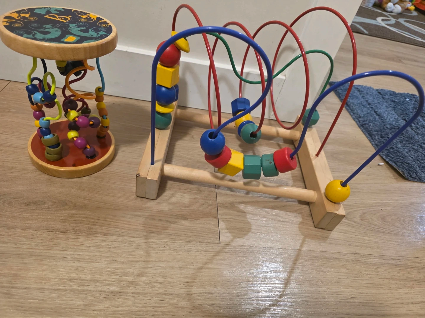 Here's a fun wooden bead maze toy for kids! It's a great activity to keep them entertained and help with their development. The toy features colourful beads and a sturdy wooden frame.
