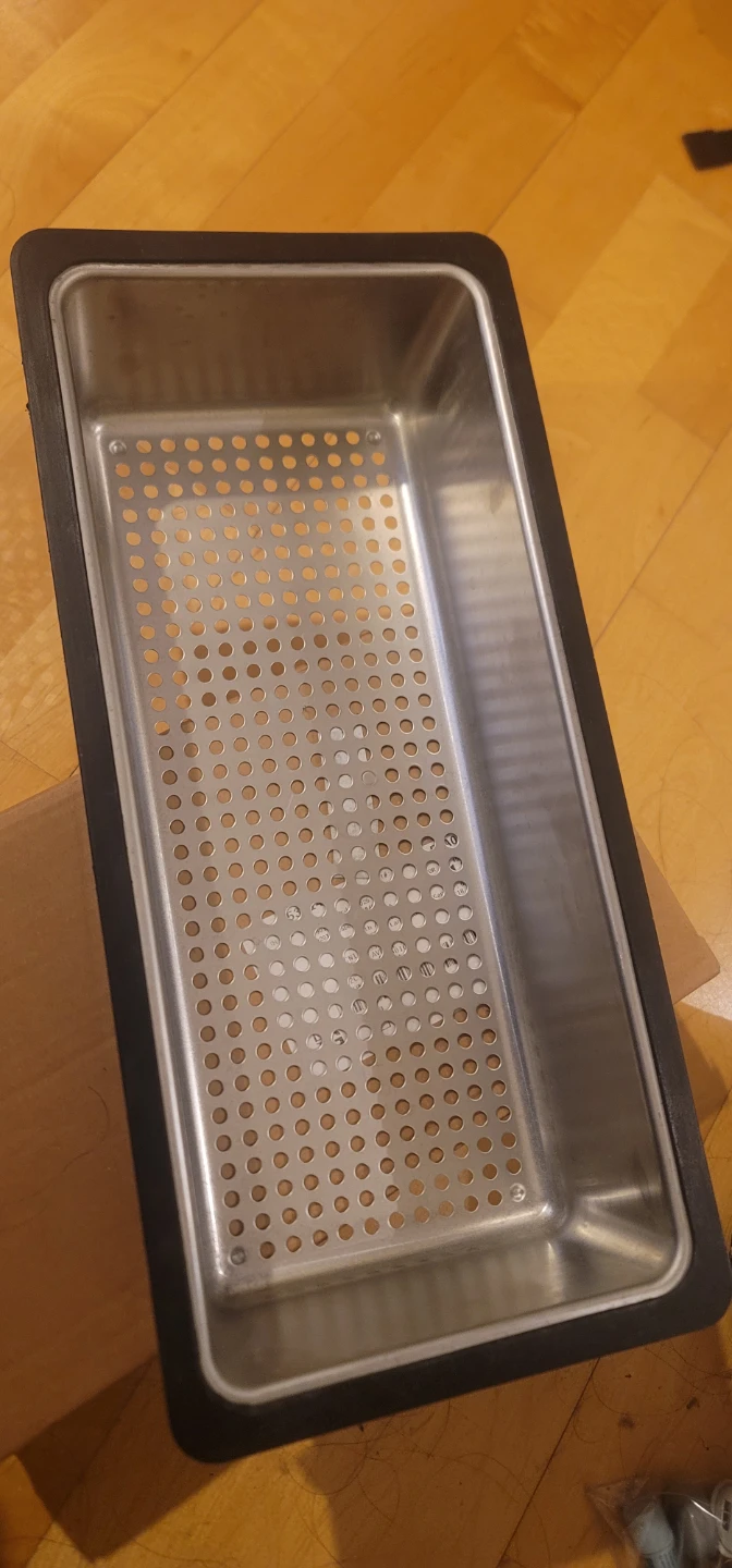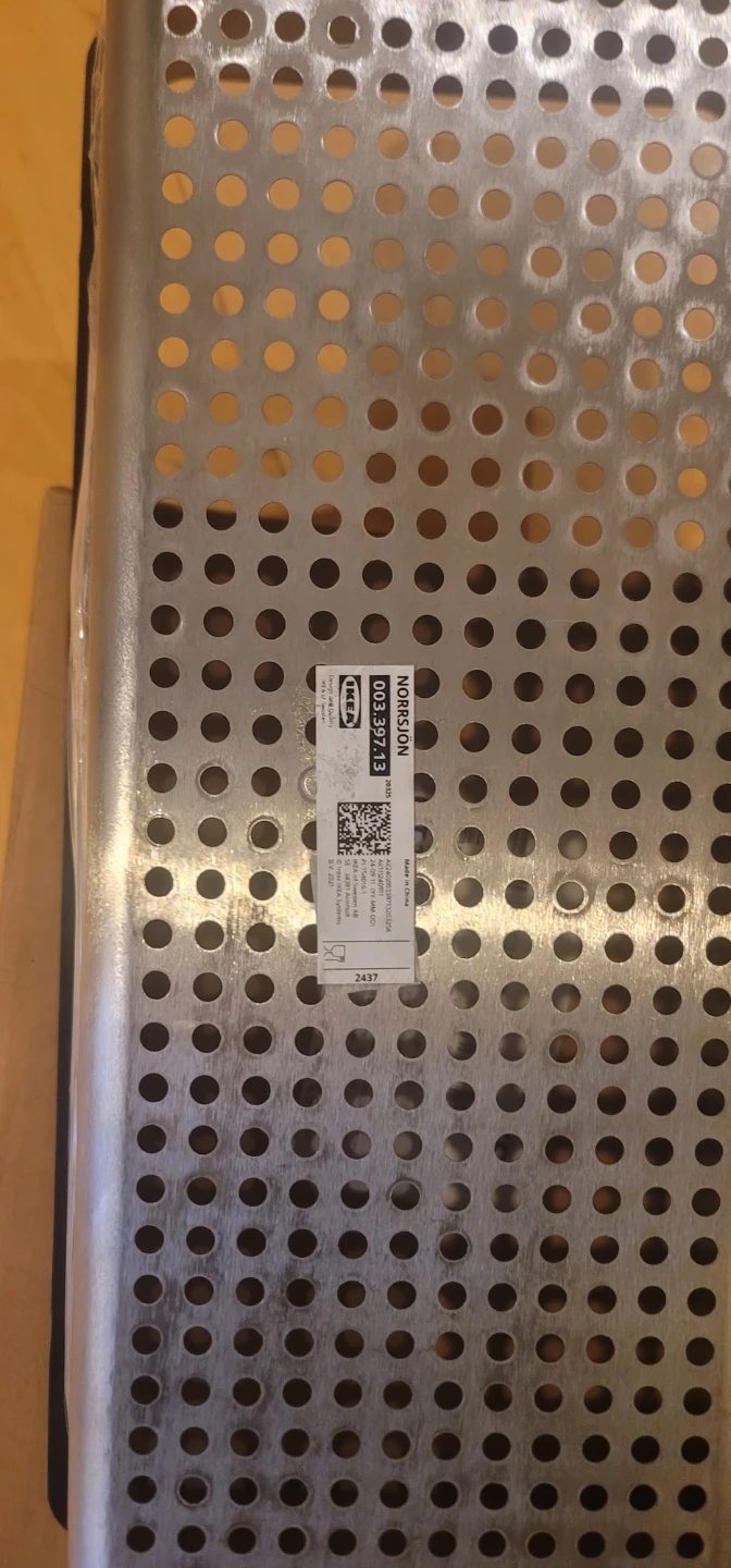 IKEA NORRSJON sink strainer made of stainless steel. This rectangular strainer fits neatly into the sink. It's great for draining dishes or washing produce. Includes rubber rim for sink protection.