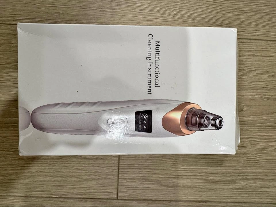 New multifunctional cleaning instrument, still sealed in original packaging. It has a white and rose gold color. Product information and barcode are on the back of the box.