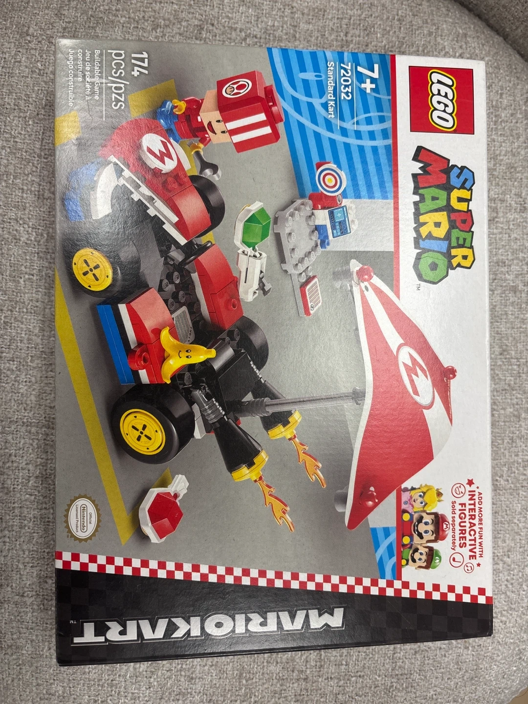 This is the LEGO Super Mario 72032 Standard Kart set. It's a buildable game with 174 pieces. The set includes the Standard Kart and some accessories.