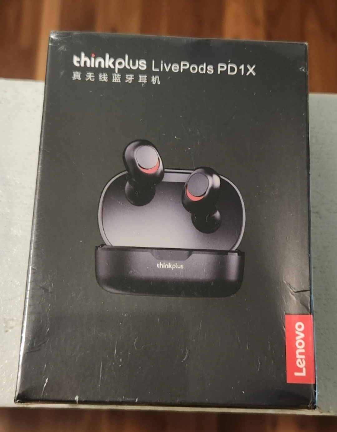 New, unopened box of Lenovo Thinkplus LivePods PD1X wireless earbuds. Black earbuds in a black charging case. Comes in original packaging.