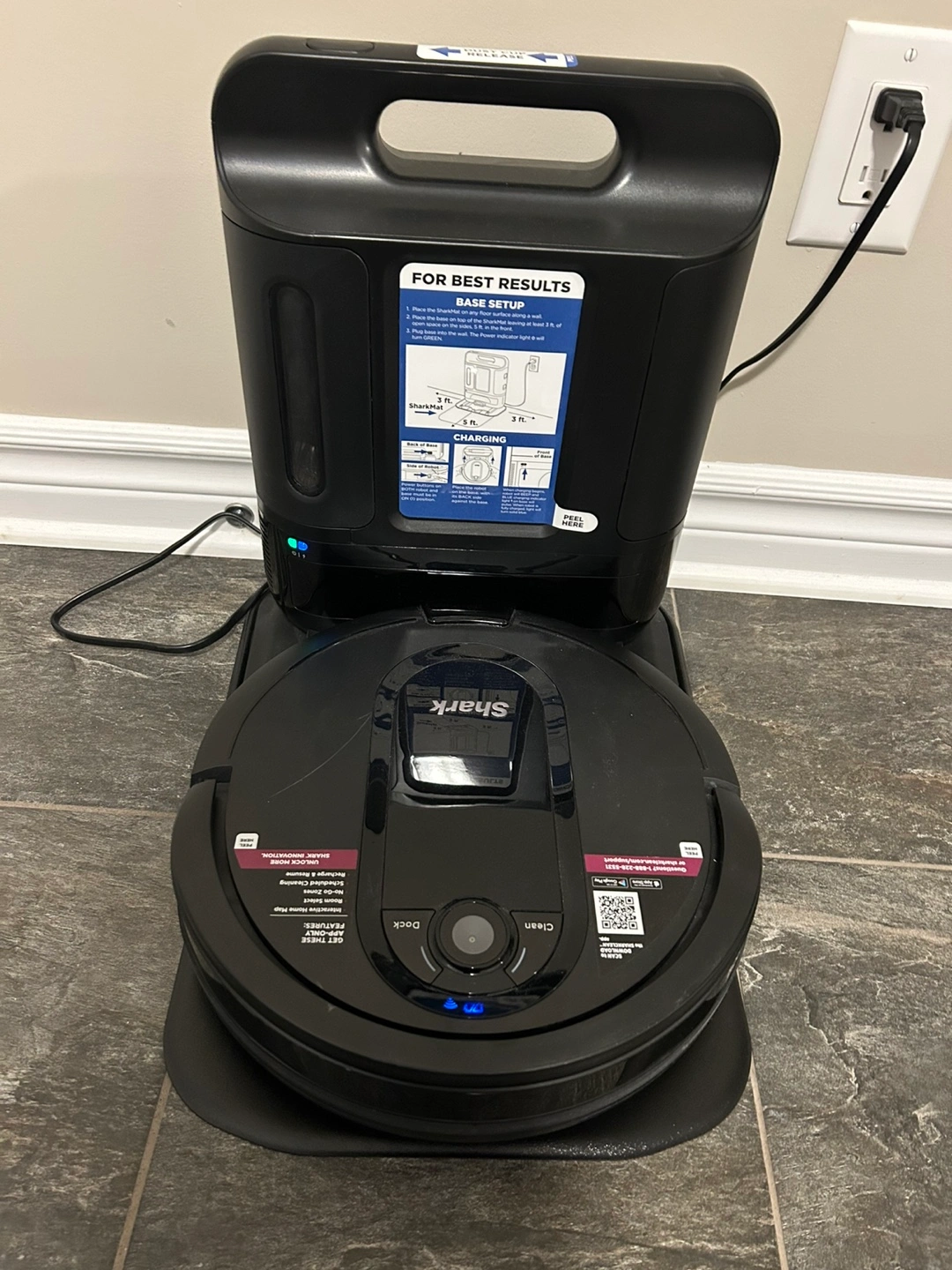 Robot vacuum and self-emptying base station. Features include scheduled cleaning and zone cleaning. Clean and dock buttons. Great condition.