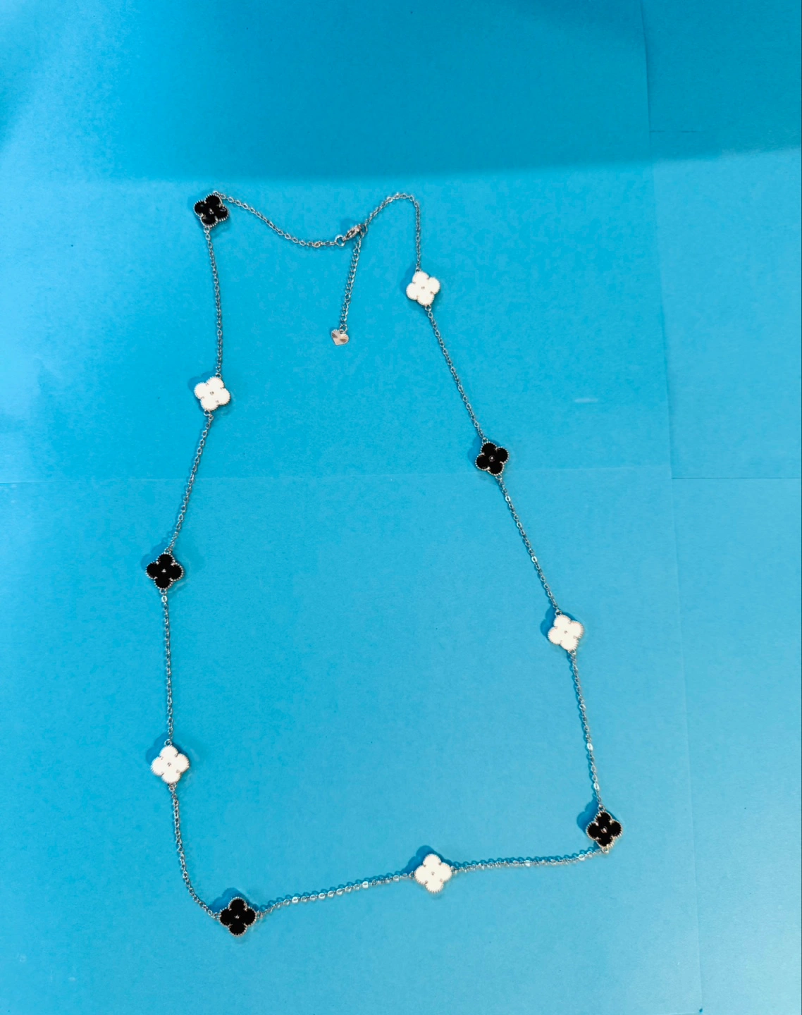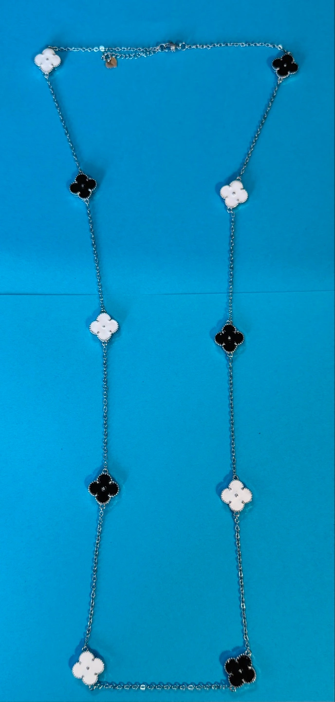 32" +2" extender BLK& WHT Silver Clover ENAMELED Necklace NEW!!
