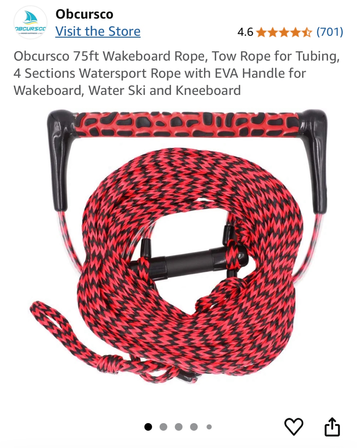 1 / 21 / 2Buy & SellObcursco 75ft Watersport Tow Rope with EVA HandleObcursco 75ft Watersport Tow Rope with EVA Handle$3075-foot watersports rope. Four sections. EVA handle. For tubing, wakeboarding, waterskiing, and kneeboarding.WHERE TO MEETCheck LocationView MapSELLERverifiedElviraYonge Eglinton1175 reviews0 chats·0 favorites·10 viewsSEND CHAT TO SELLERHi Elvira! I’m interested in your listing.Hi Elvira! I’m interested in your listing.Get the Karrot app to chatSign In to chat