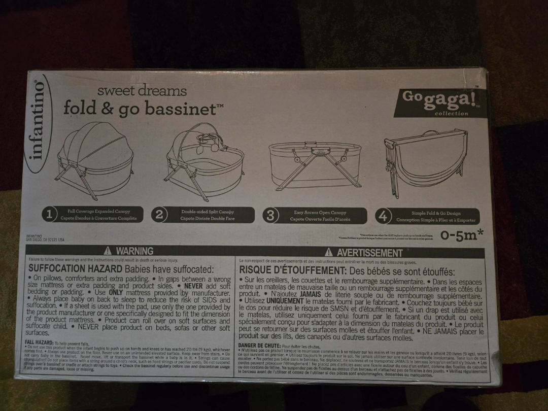 This Infantino Fold & Go bassinet is brand new in an unopened box.