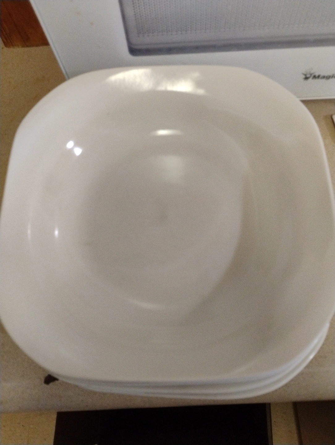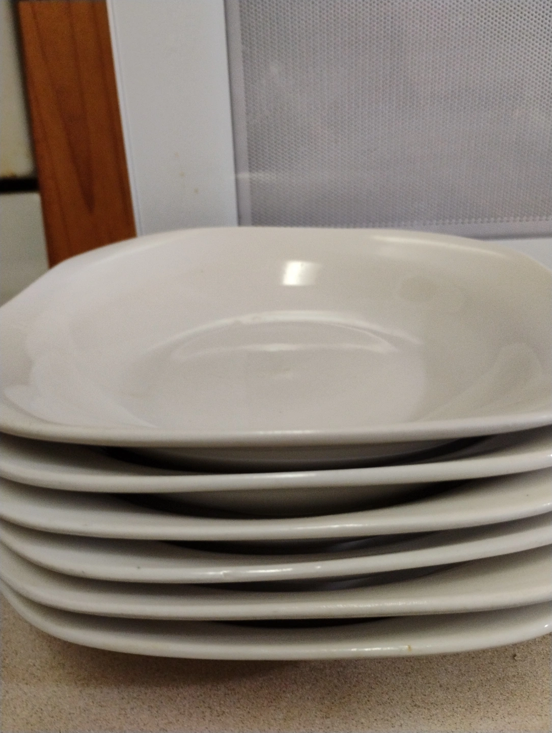 438Six bowls . Square shape. White colour. Good for everyday use. Suitable for soup or pasta.