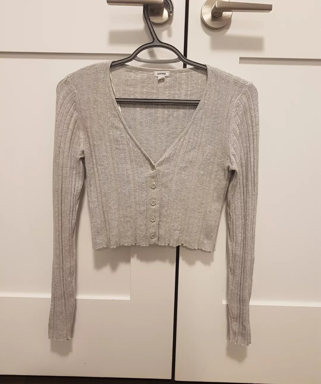 Selling this garage ribbed cardigan in grey. It is in perfect condition with no flaws or damage and has only been worn once. This is a size small but could fit a xs to m.
