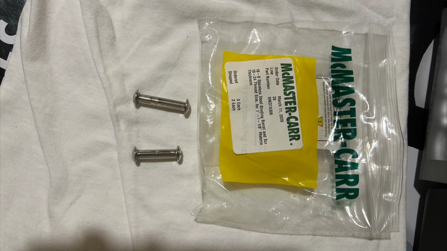 89Stainless steel barrel and truss head screws. McMaster-Carr PN 99637A306. 2 available in unopened packaging, 1 opened, and 1 of a different size (unknown pn)
