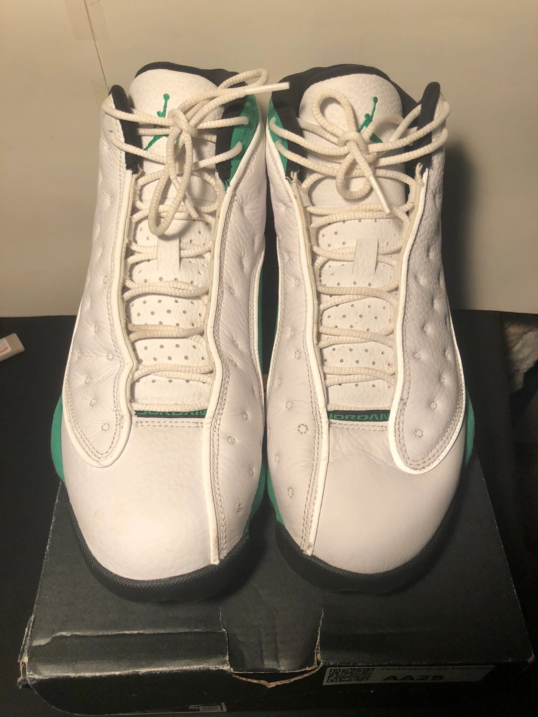 Preowned but super clean, Air Jordan Lucky Green Sneakers, size 8.5 , please see all photos