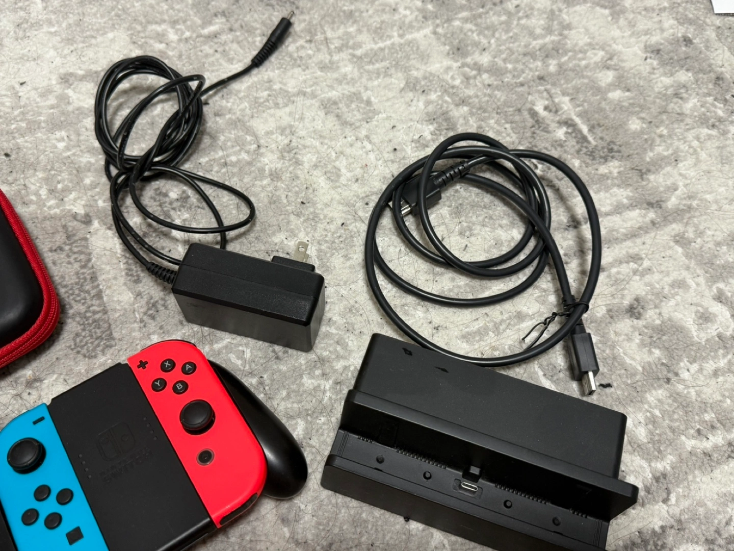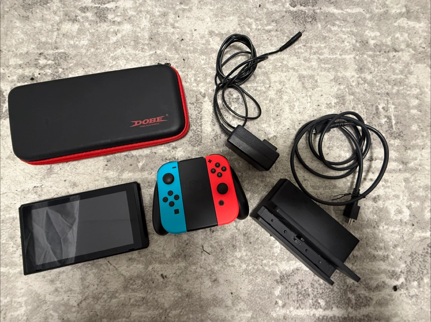 Nintendo Switch console, carrying case, and dock. Includes power adapter and cables. Used, but in good condition.