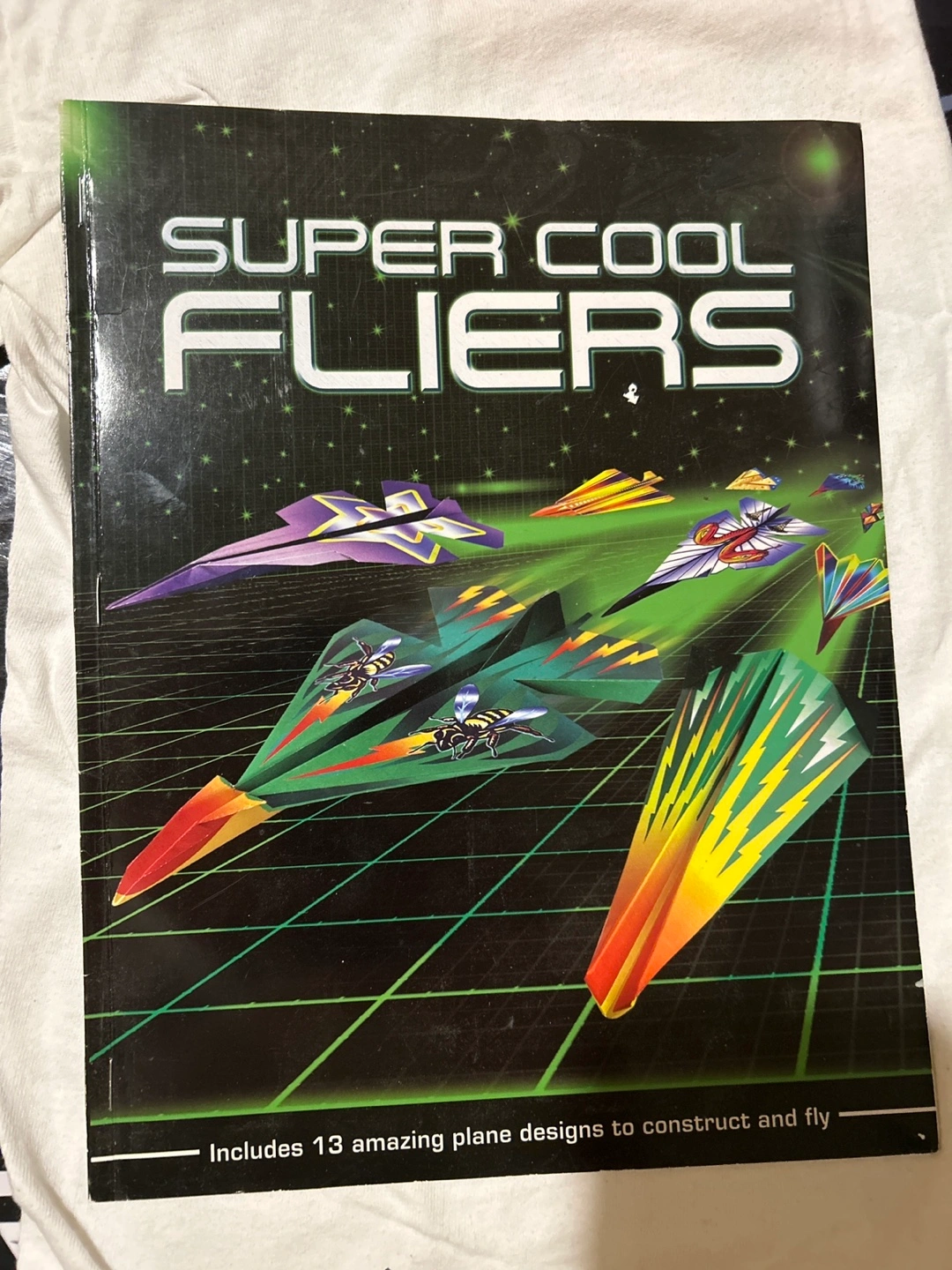 89Book featuring 13 paper plane designs (only 5 fancy sheets of paper left). Instructions to construct and fly. Great for kids.