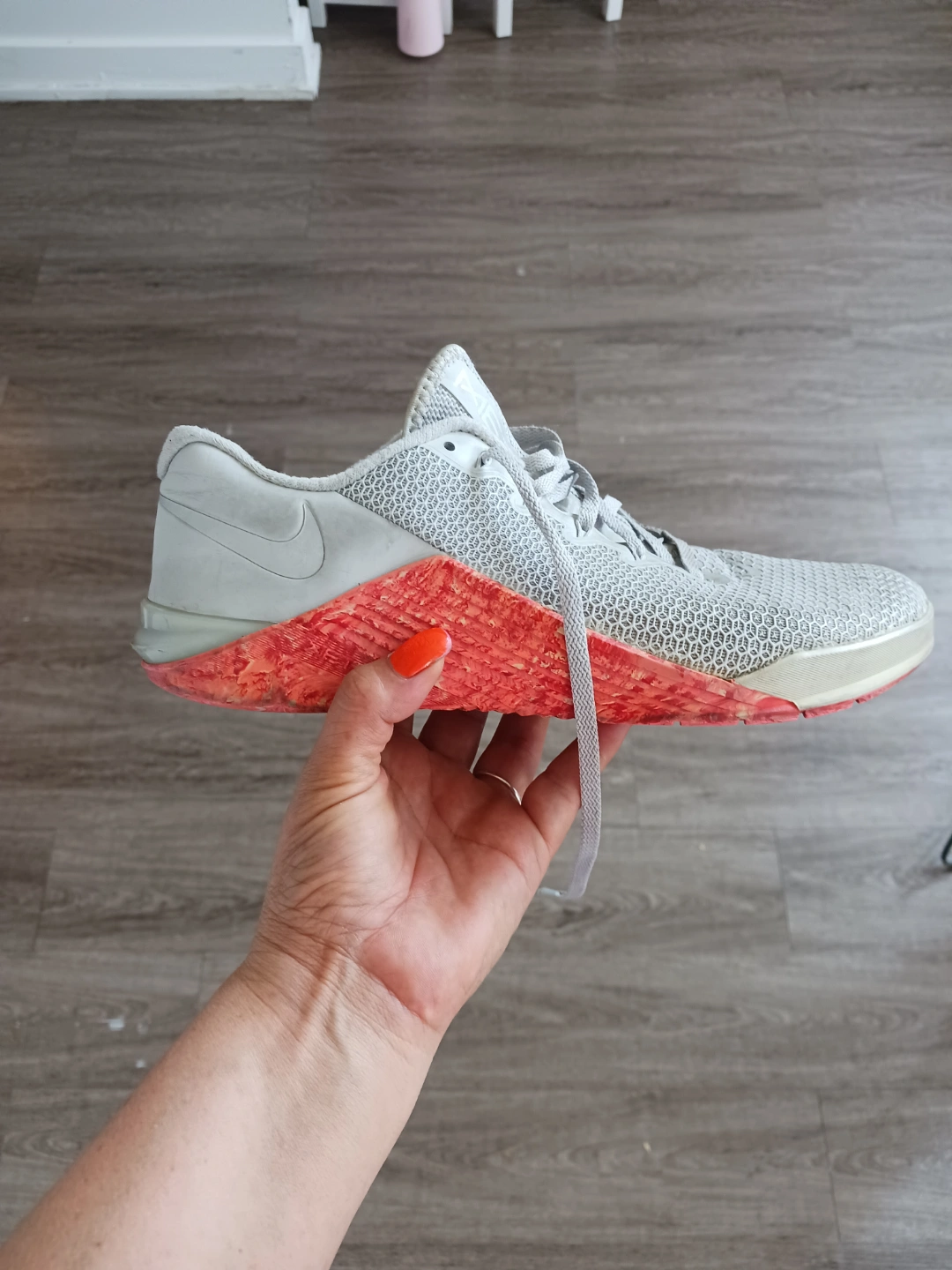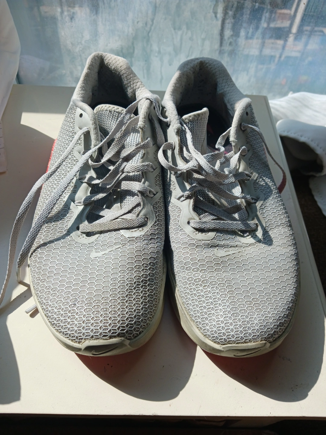 1000+Grey running shoes. Lace-up closure. Lightweight and breathable material. Good for workouts or everyday wear.