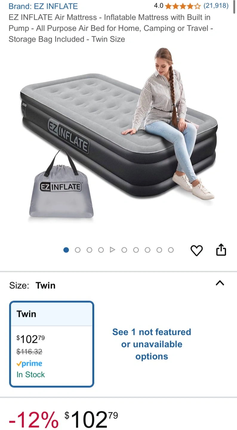 125EZ inflate mattress. Plug into outlet to inflate. Durable and lightweight.
