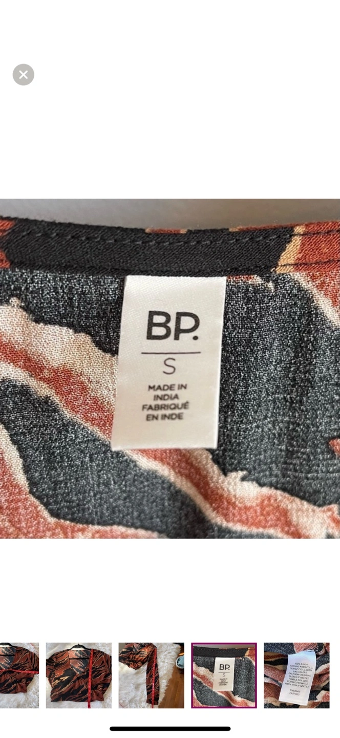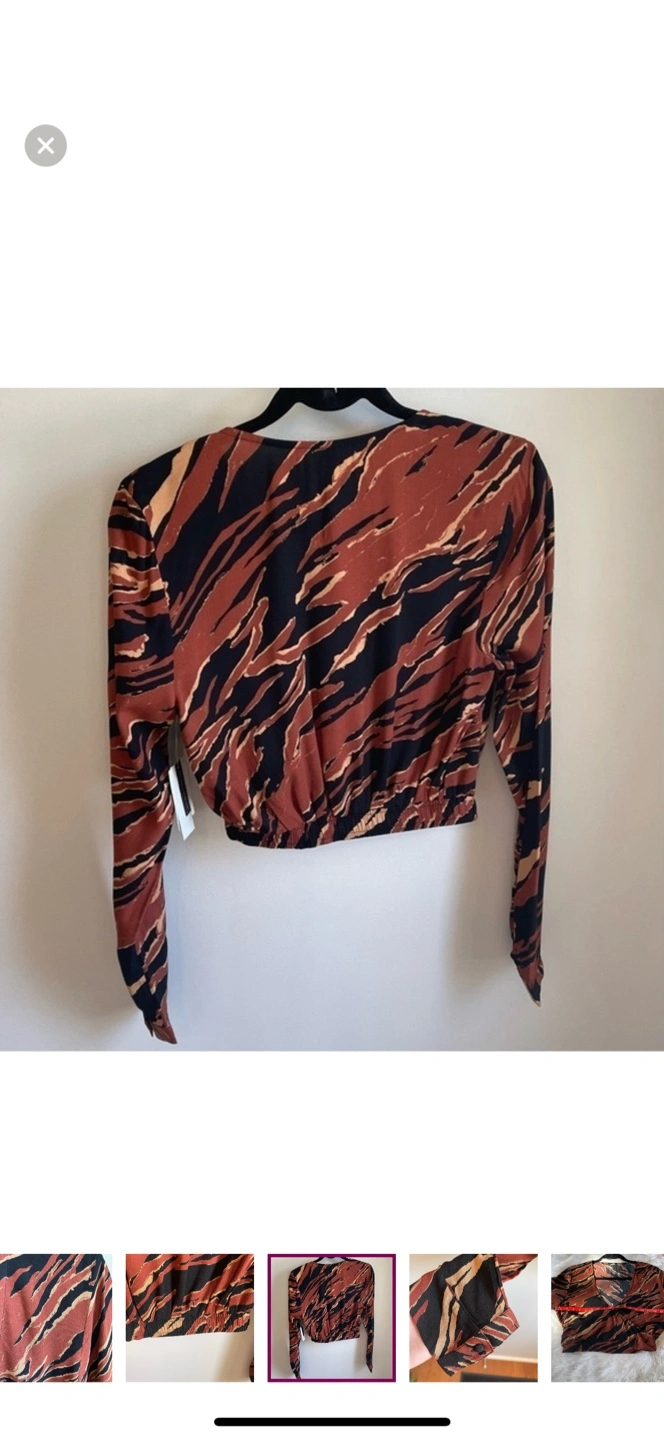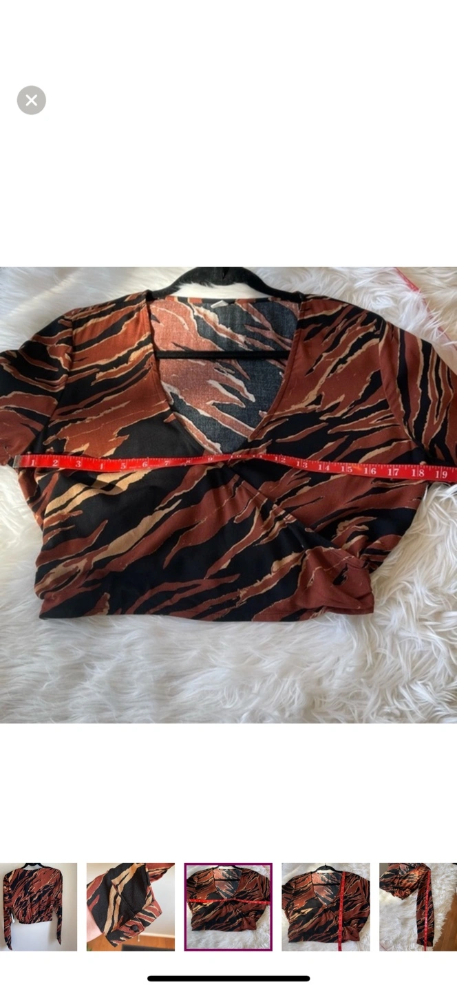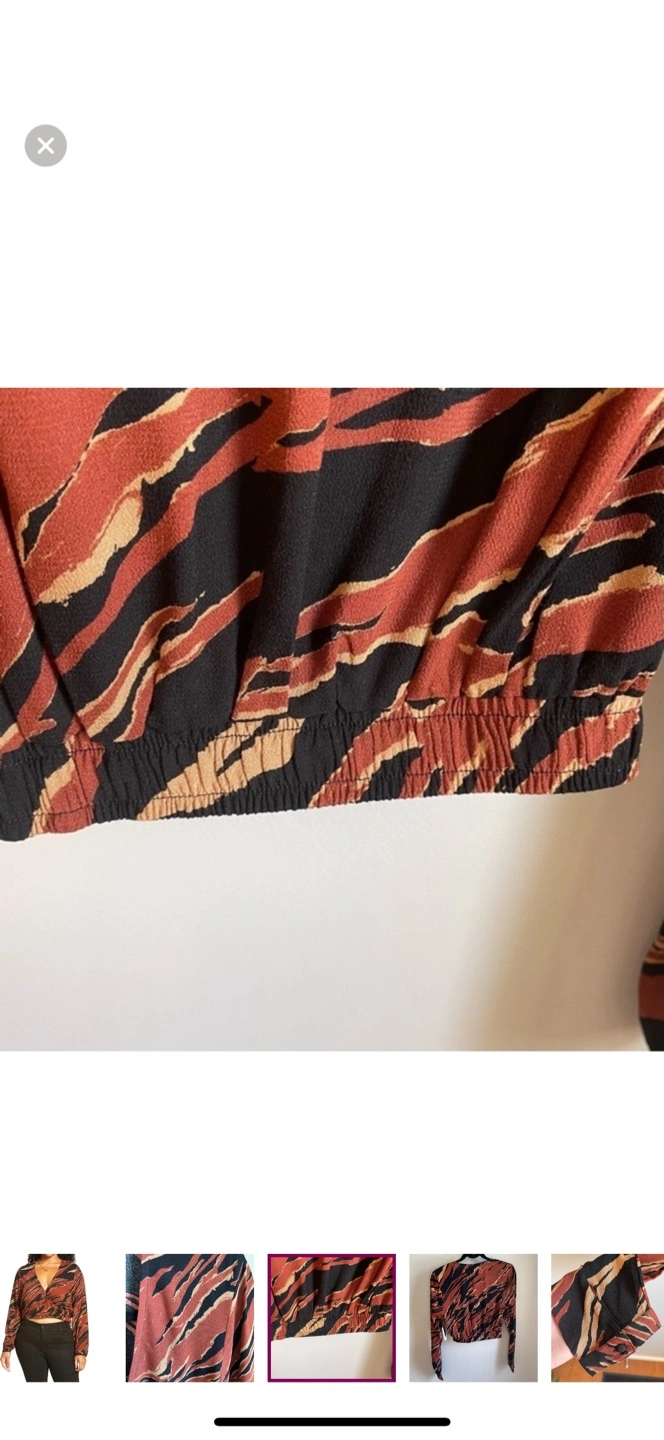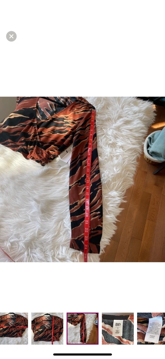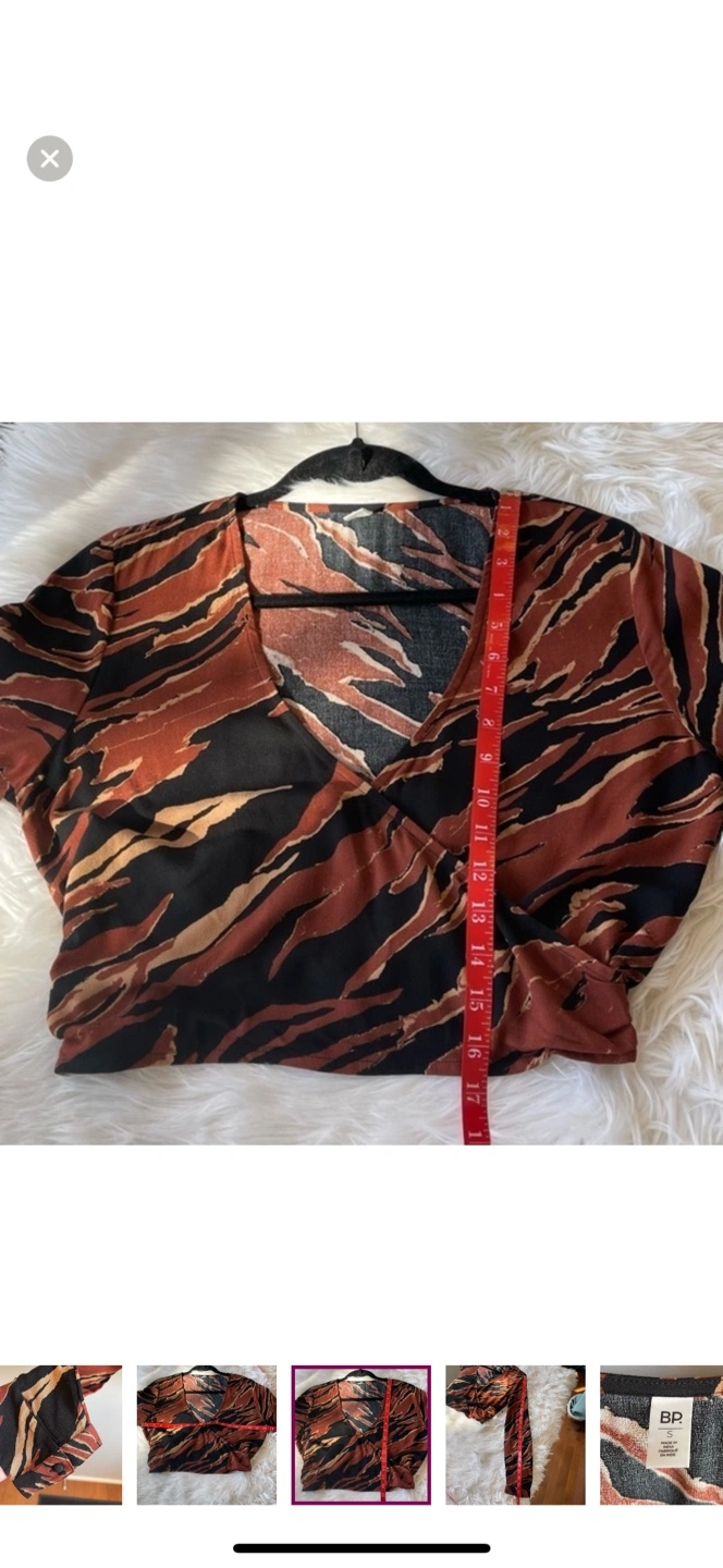 This BP Nordstrom blouse features a striking burnout tiger stripe pattern, a cropped silhouette, and long sleeves, perfect for adding a fierce touch to your wardrobe. Being new with tags, it’s ready to turn heads! Women’s size S. See photos for measurements. Cross posted. Pickup only. Located 2 blocks west of Polo Park. Shipping options available message me for details.