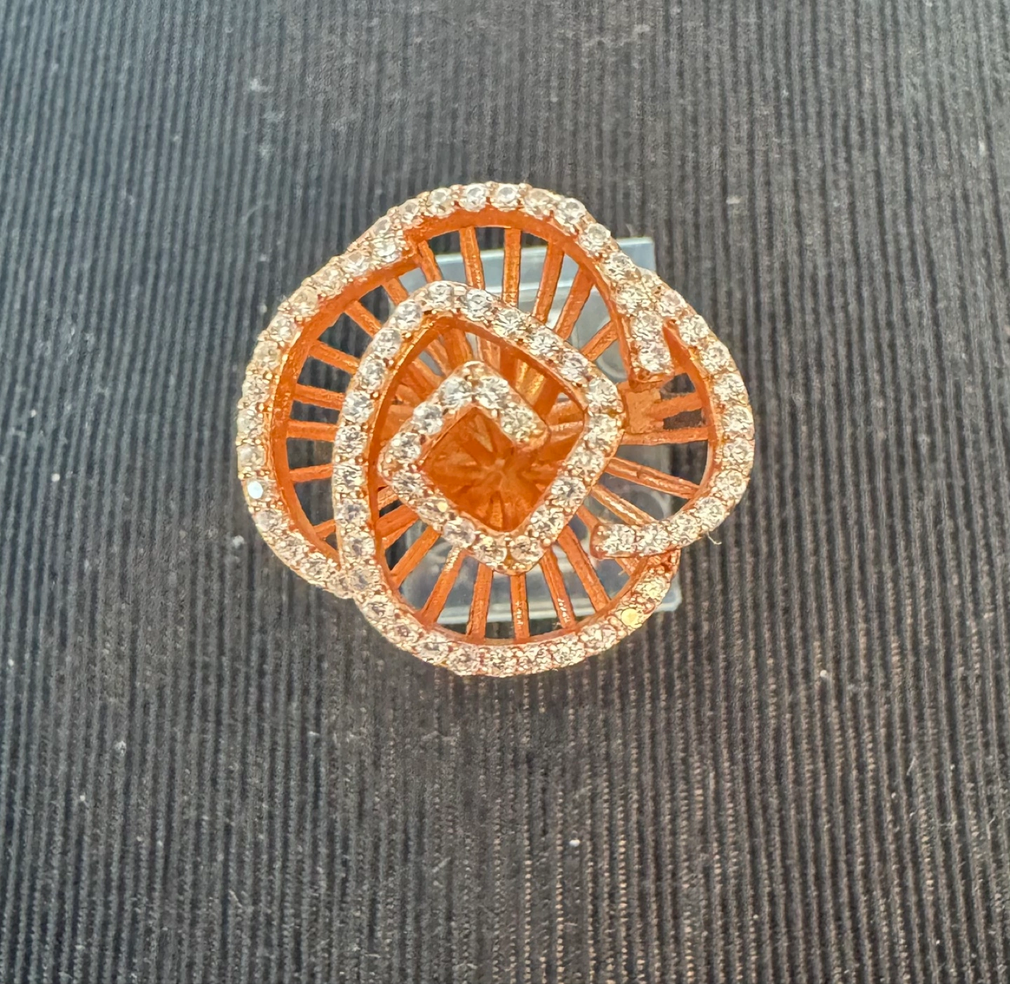 Stunning ROSE GOLD ring SIZE 8. Features a flower design with crystal clear stones. Elegant and eye-catching piece. Perfect for adding a touch of sparkle to any outfit!!