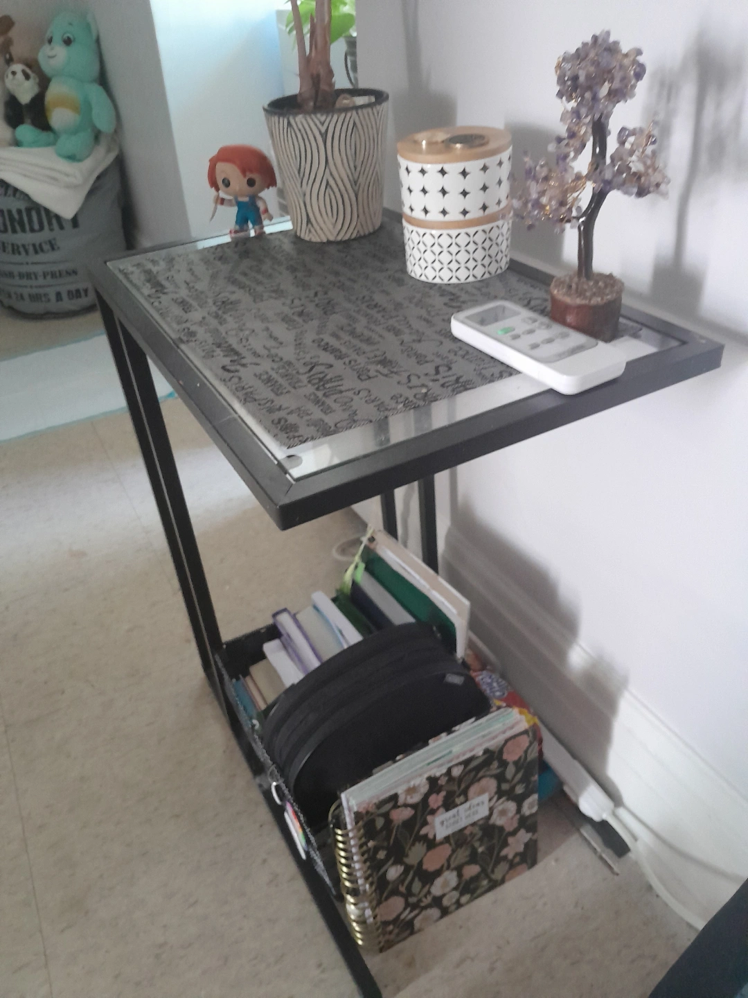 Buy & SellGlass-Top End Table with Metal FrameGlass-Top End Table with Metal Frame$15Small end table. Features a glass top with a black and white print, a black metal frame.WHERE TO MEETCheck LocationView MapSELLERcarmenTrinity Bellwoods645 reviews2 chats·1 favorites·77 views